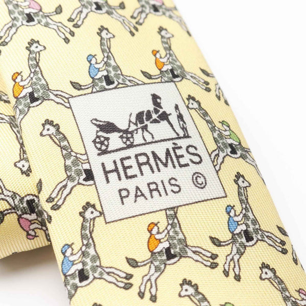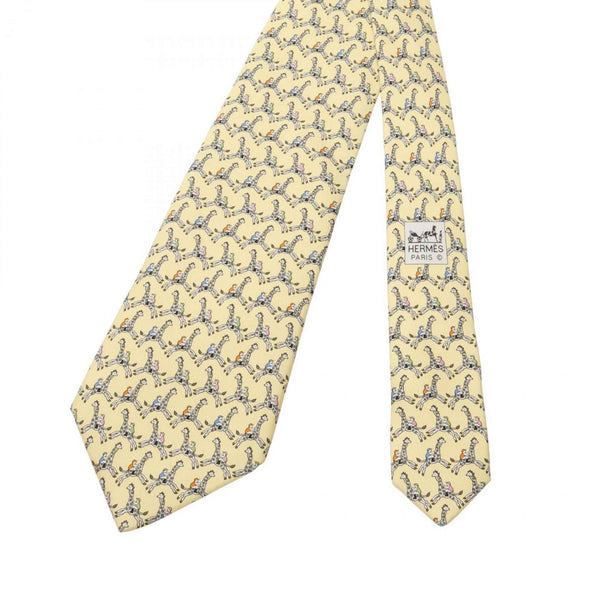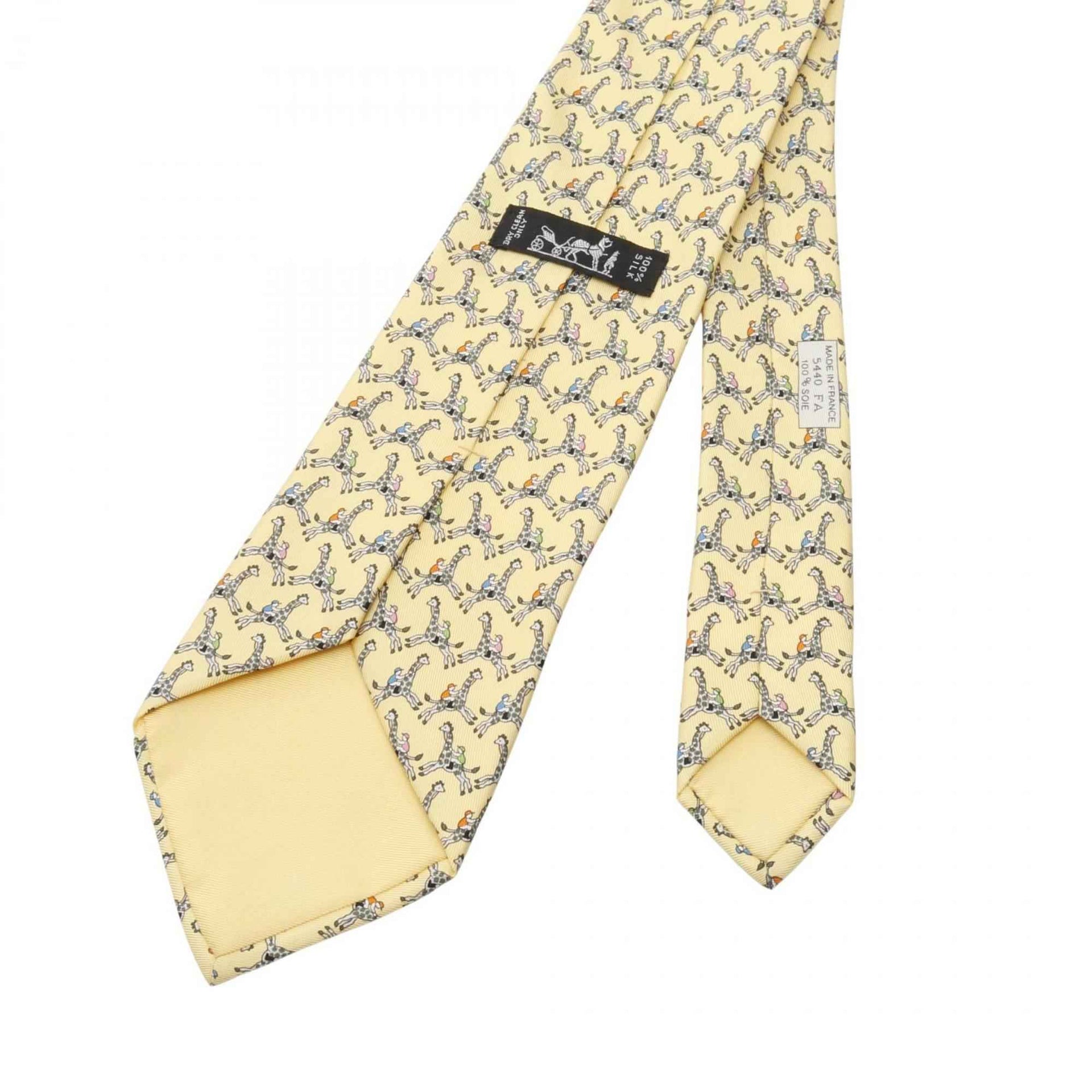 Hermes Hermès all-over print silk tie for men in multicolored yellow tones.
