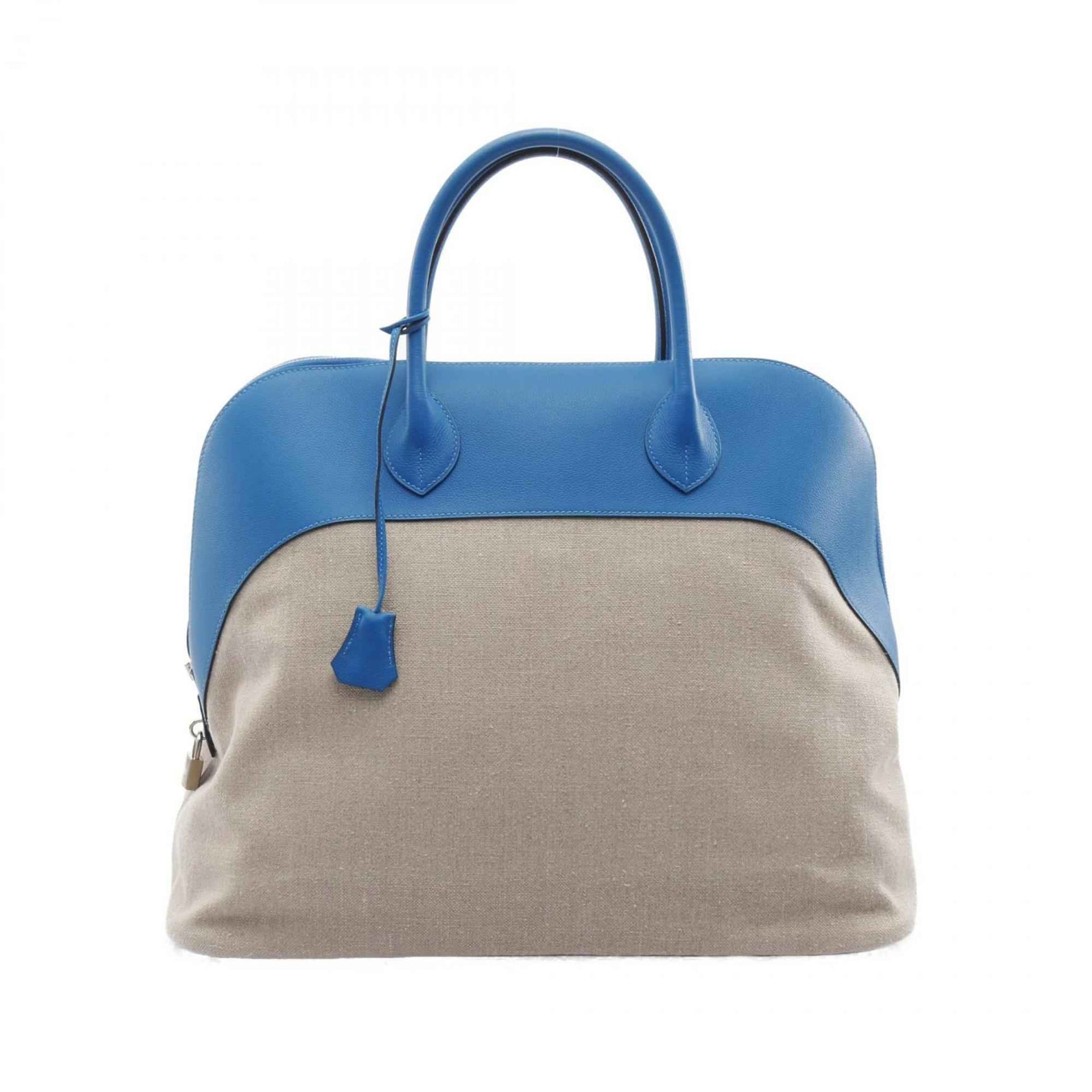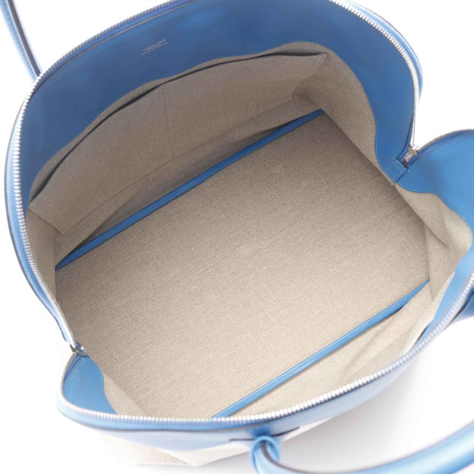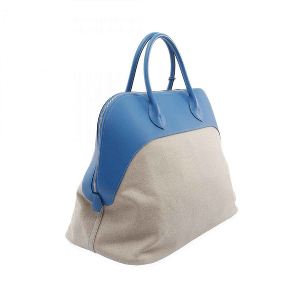 Hermes Hermès Bolide Relax 45 Handbag, Leather Canvas, Evercolor / Toile de Camp, Evercolor, Women\'s, Blue, Beige, Natural