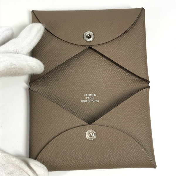 HERMES Hermes Calvi Business Card Holder Pass Case Bi-fold Holder/Card Epson Men's Women's Etoupe Gray