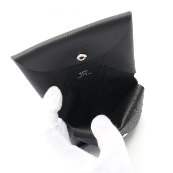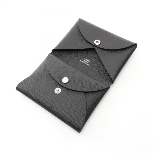 Hermes HERMES Calvi Duo Wallet/Coin Case Wallet Calfskin (Cowhide) Veau Epsom Leather Women's Black