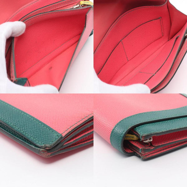 Hermes HERMES Camayle Combine Long Bi-fold Wallet Leather Epsom Women's Pink Green Yellow