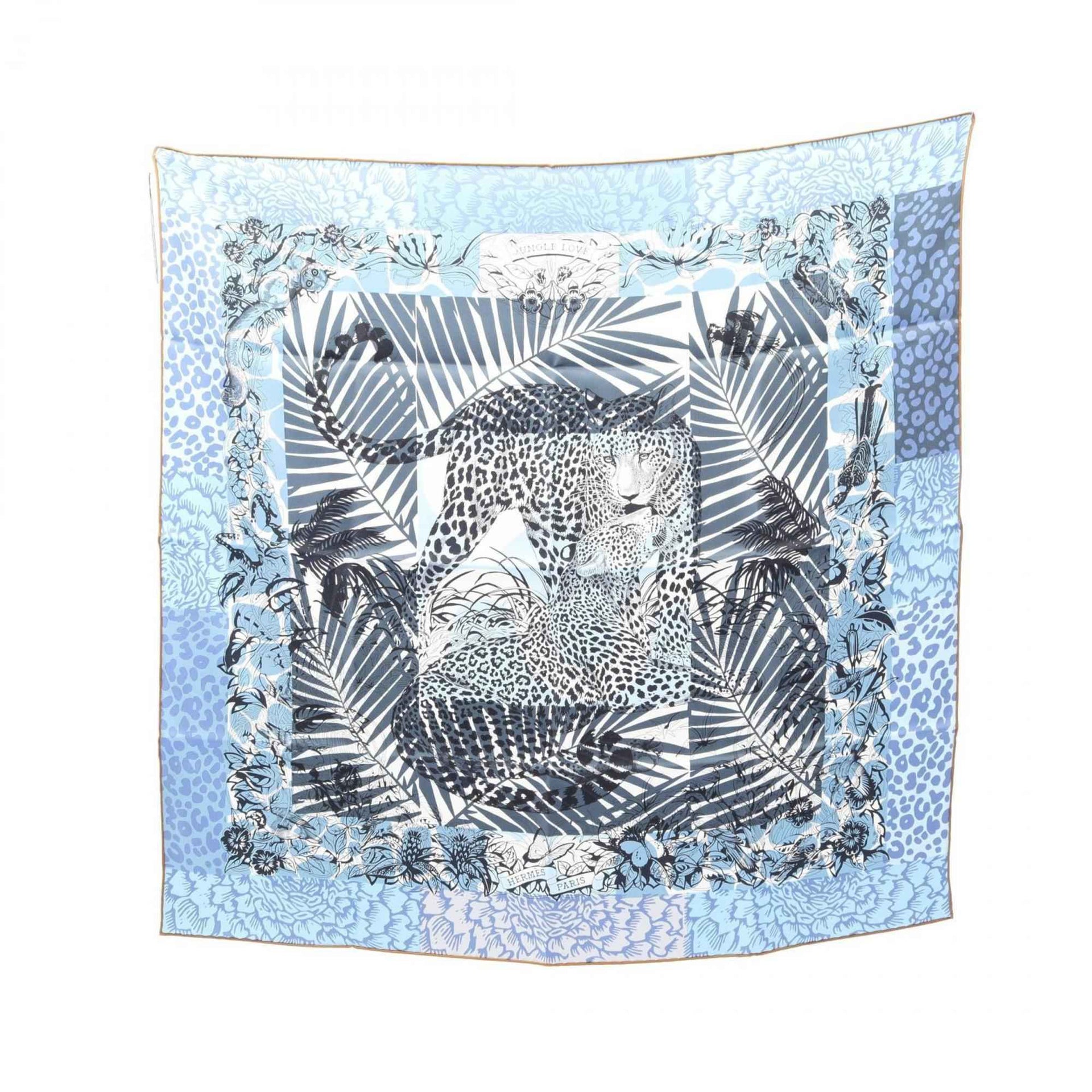 Hermes Hermès Carré 70 Jungle Love au Tampon Silk Scarf for Women, Blue Multicolor