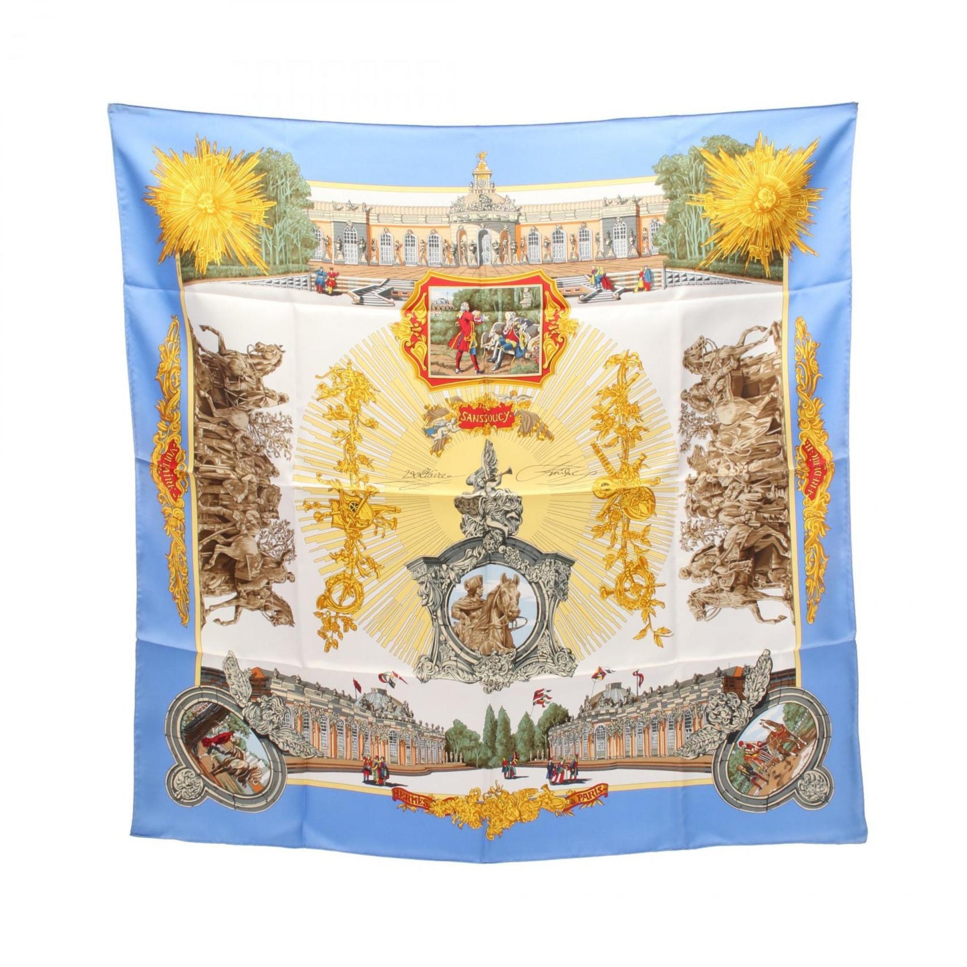 Hermès HERMES Carré 90 SANSSOUCY Silk Scarf for Women in Multicolor Blue