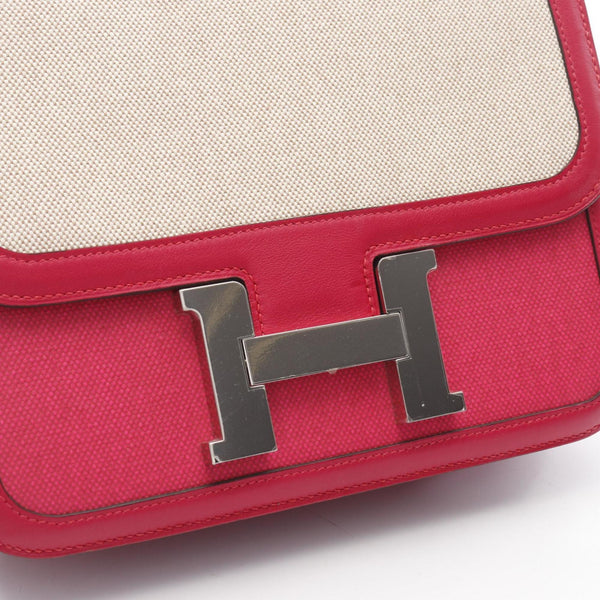 Hermes HERMES Constance 3 24 Rose Shocking Raspberry Ecru Shoulder Bag Toile H Berline Swift Women's Pink Beige