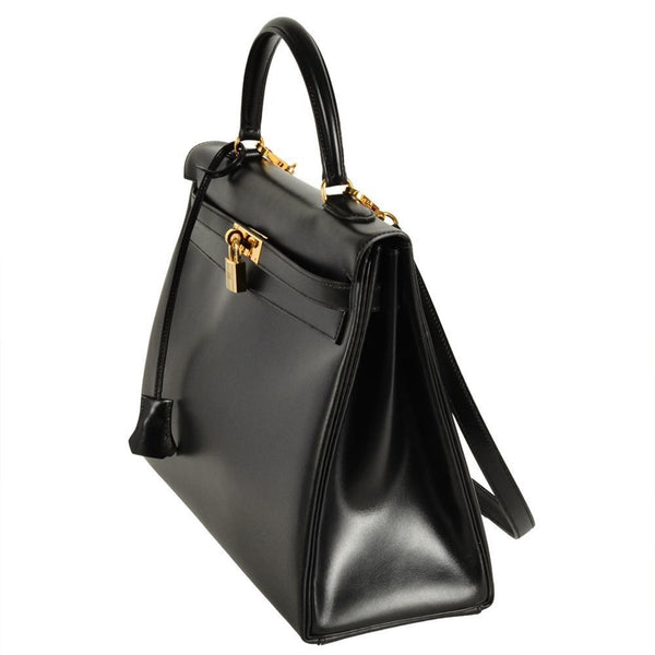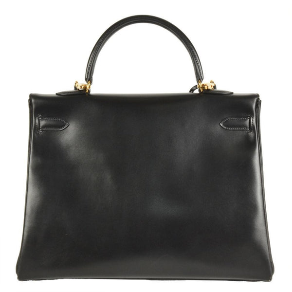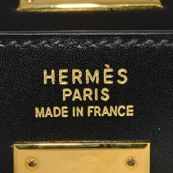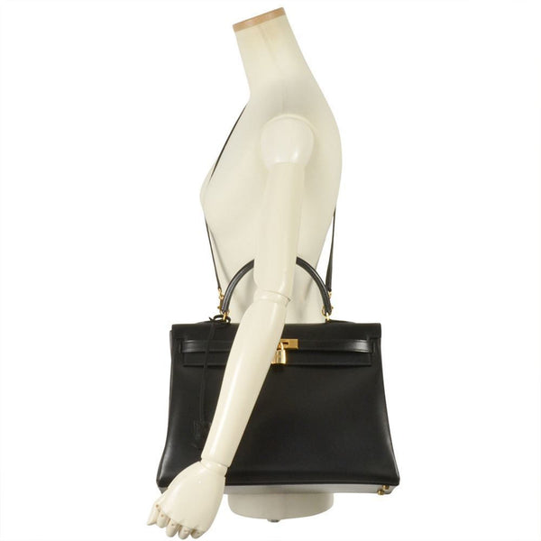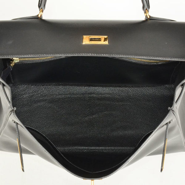 Hermes Kelly 35 Handbag Box Calf □A (Manufactured around 1997) Engraved Black Inner Stitching Women's