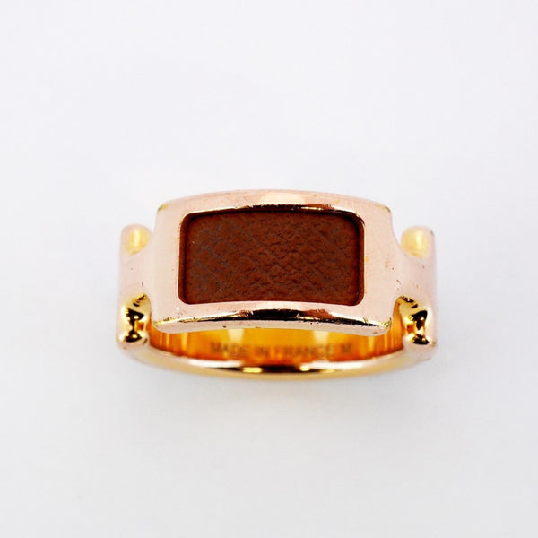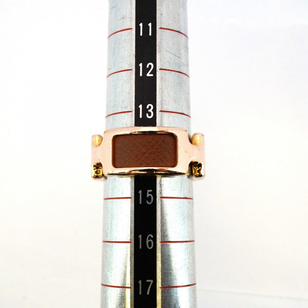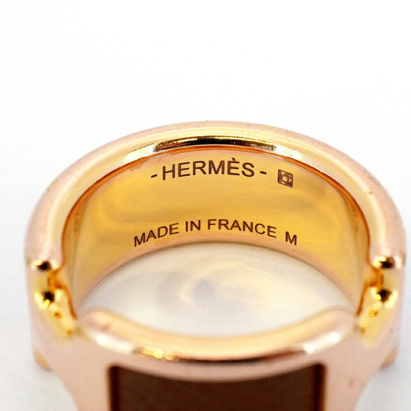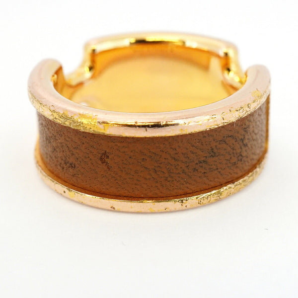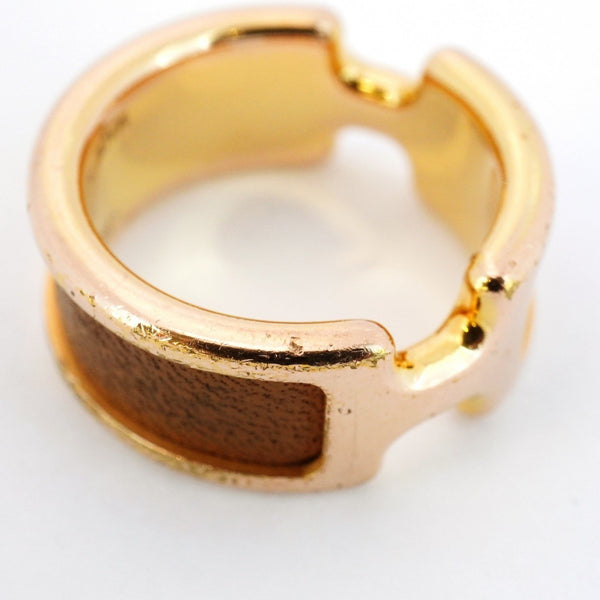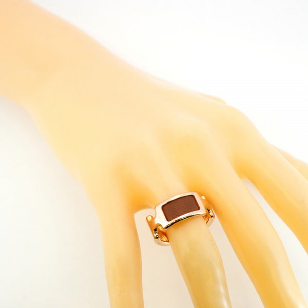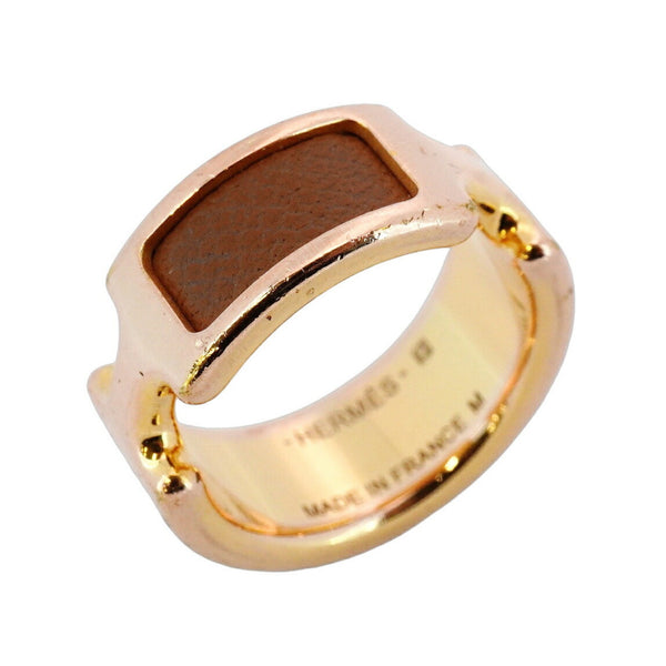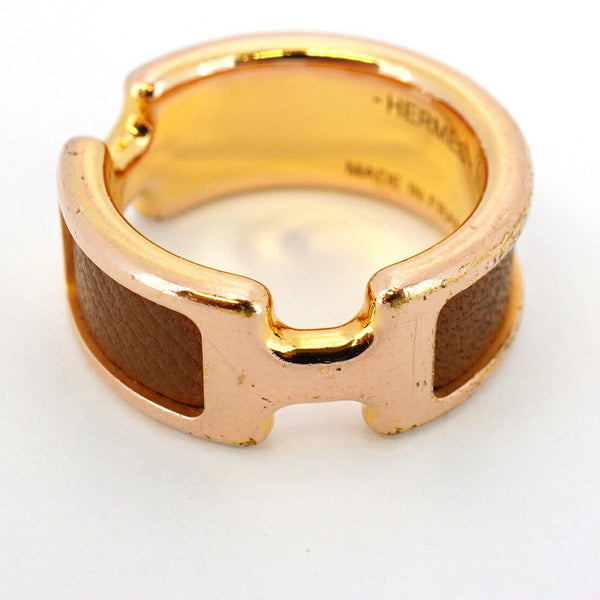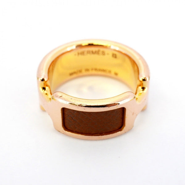 Hermes Ring Olympe PM GP Plated Leather Brown Pink Gold Size 14.5 Women's