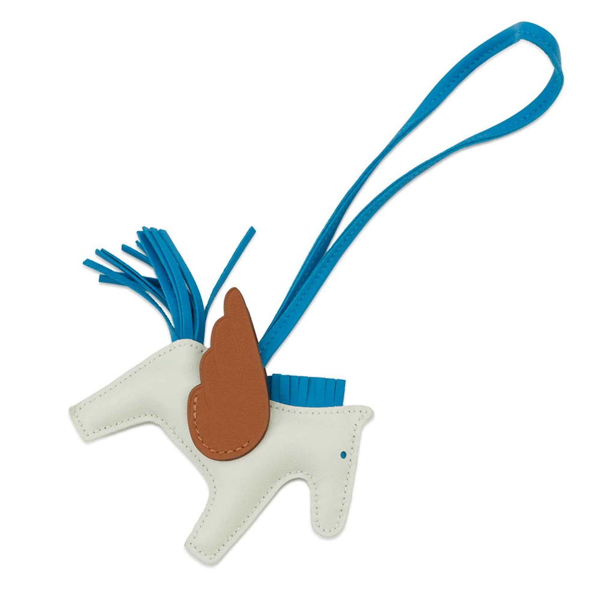 Hermes Rodeo PM Pegasus Bag Charm, Vertifiz, Gold, Blue Zanzibar Lambskin, Double Stamp