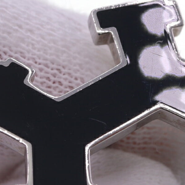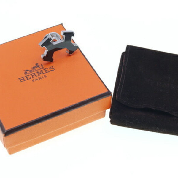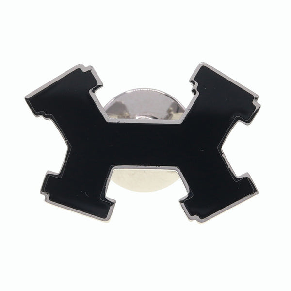 Hermes Street H Pin Brooch in Black and Silver Metal for Women