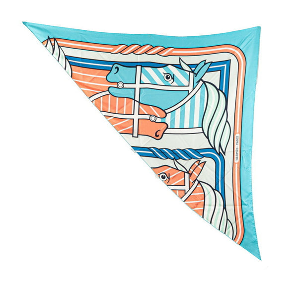 Hermes Triangle Geant Scarf Muffler Light Blue Multicolor Silk Women\'s HERMES
