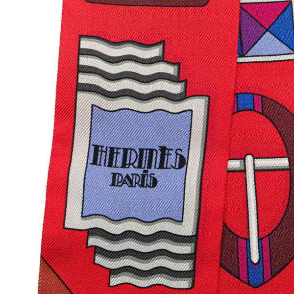 Hermes Twilly CARRE EN BOUCLES Scarf Muffler Red Silver Multicolor Silk Women\'s HERMES