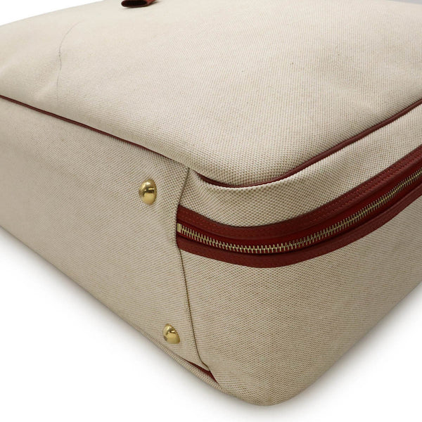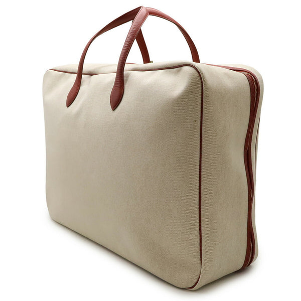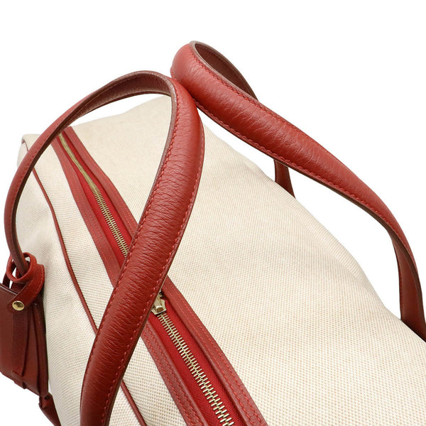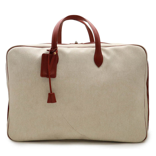 HERMES Victoria 60 Boston Bag Travel Toile H Taurillon Clemence Natural Red