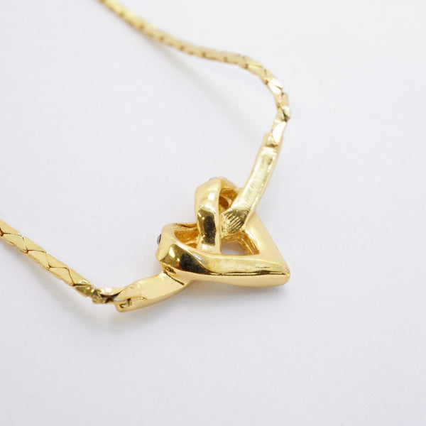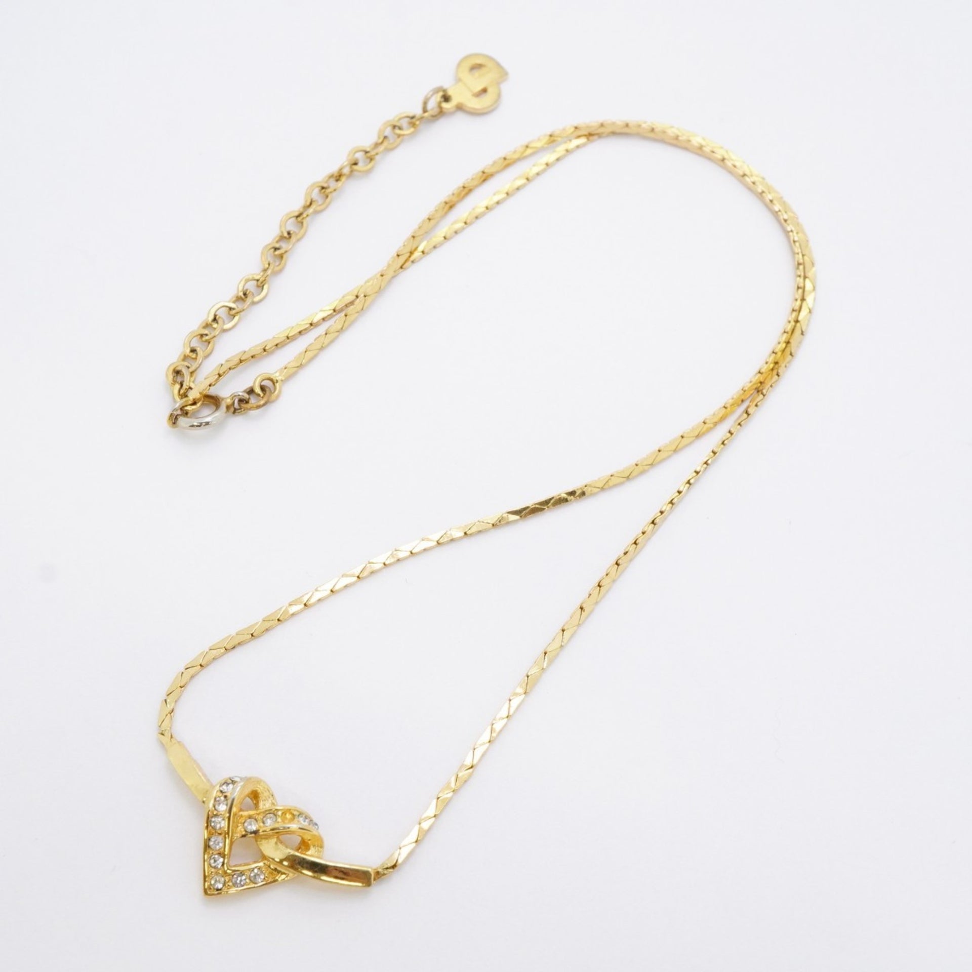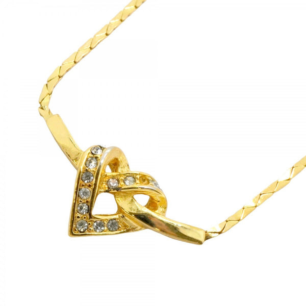 Christian Dior necklace with heart motif, GP plated, rhinestones, gold, for women