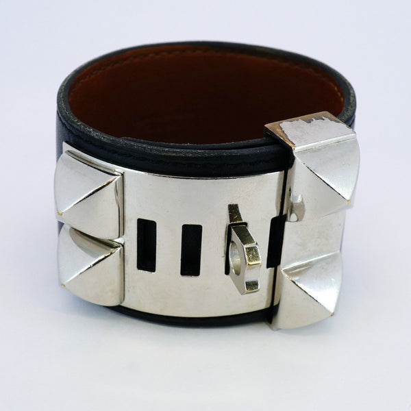 Hermes Collier de Chien Bangle, Metal, Leather, Silver, Black, Women\'s