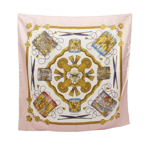 Hermès HERMES Carré 90 LES TAMBOURS Silk Scarf for Women in Pink Multicolor