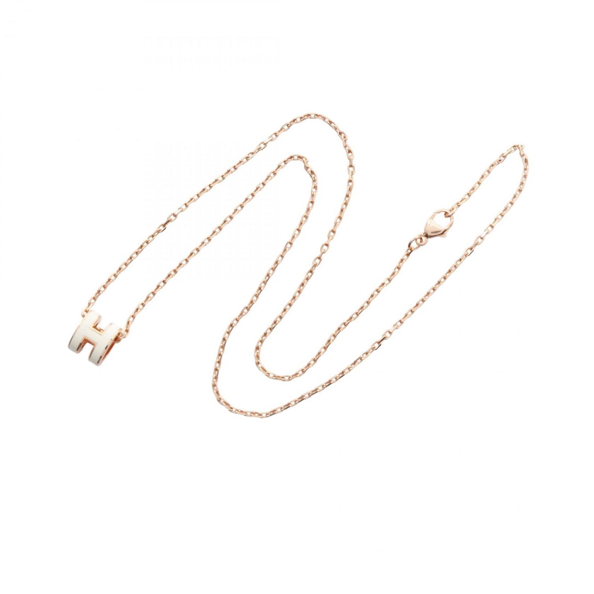 Hermes Hermès MINI POP H Necklace, Gold-Plated, Women\'s, White