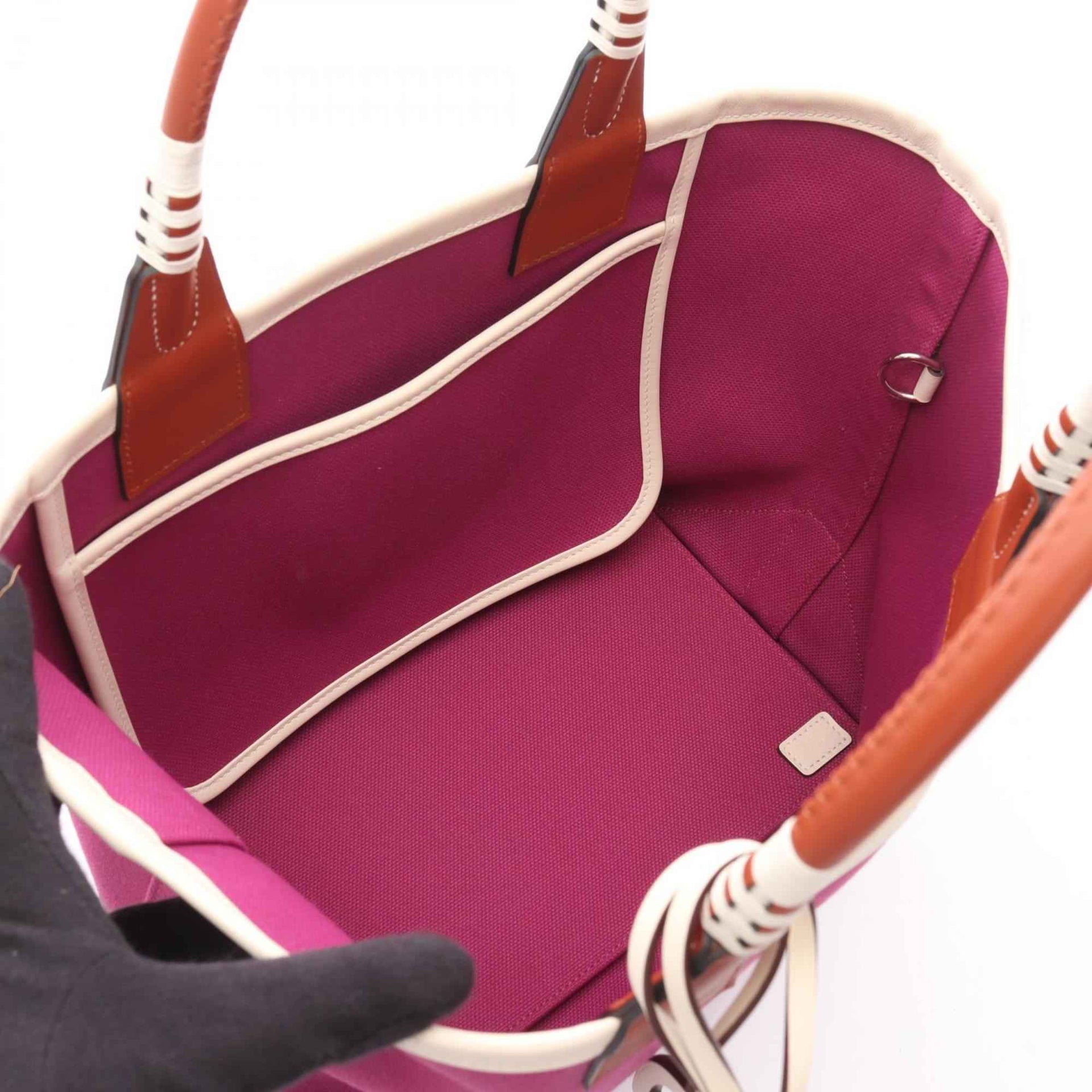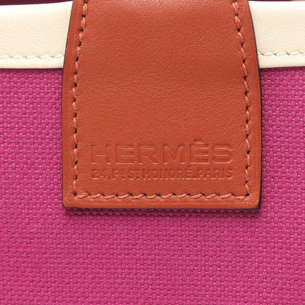 Hermes Hermès Steeple 25 Tote Bag, Canvas, Calfskin Leather, Toile Militaire, Swift Women\'s, Pink, Brown