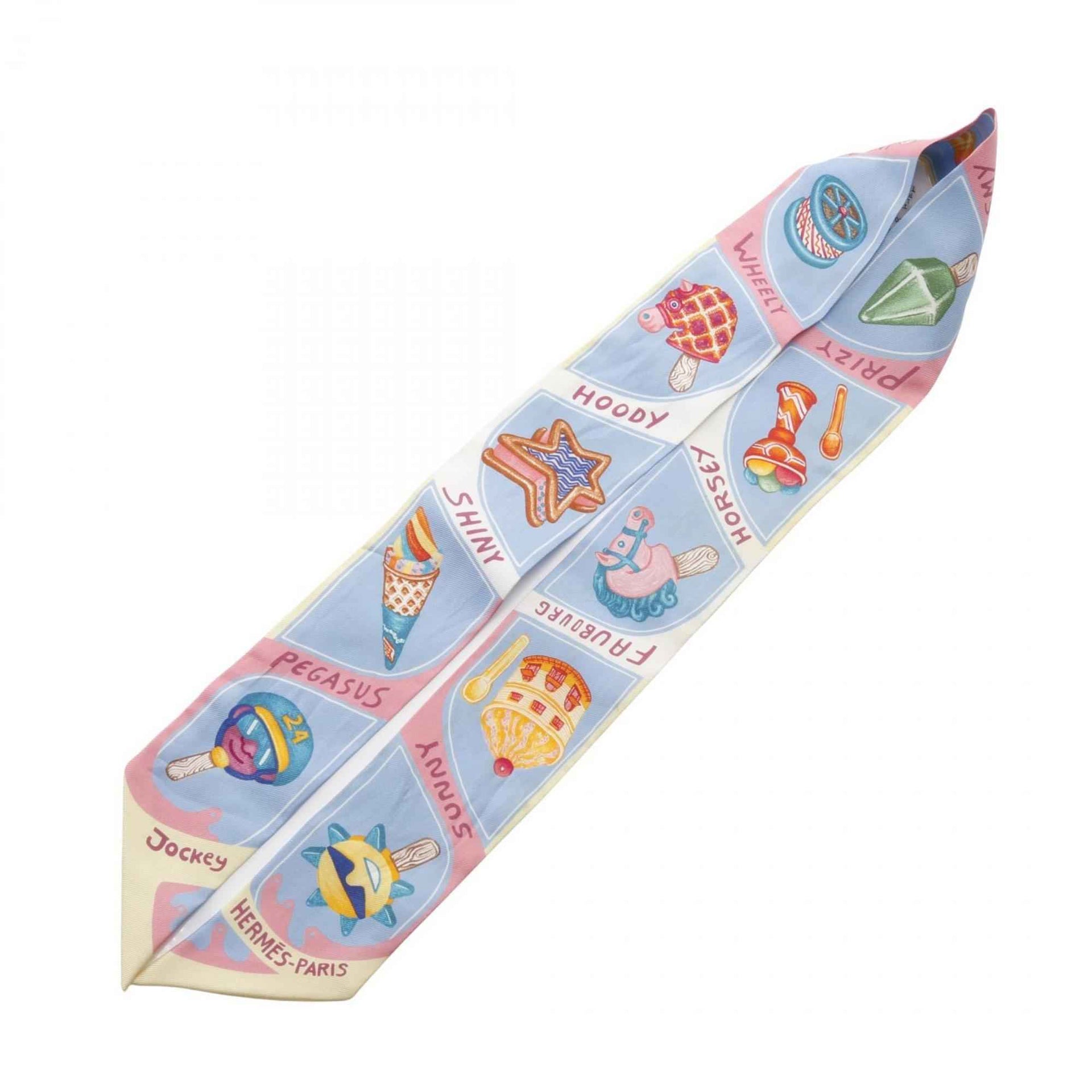 Hermes Hermès Twilly FUNNY ICE CREAM Silk Scarf for Women in Multicolor Blue