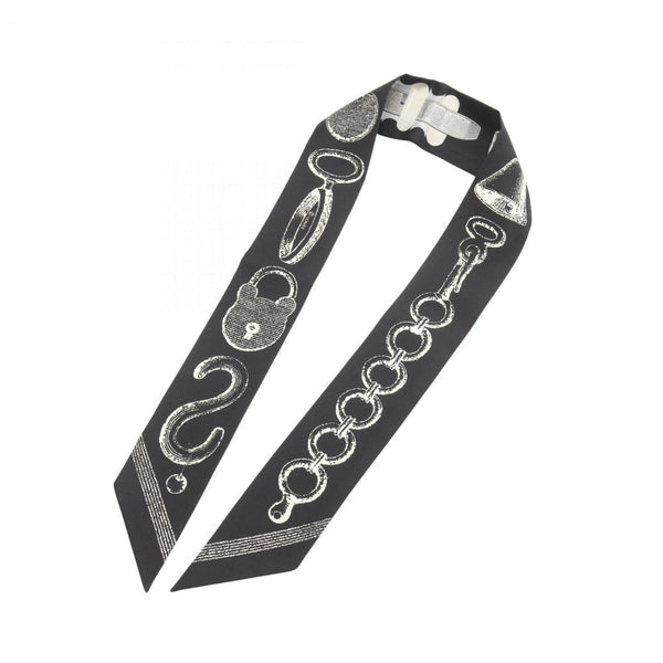 Hermes Hermès Twilly Inventaire Poetique de Brides a Bloc Silk Scarf for Women in Black and Multicolor