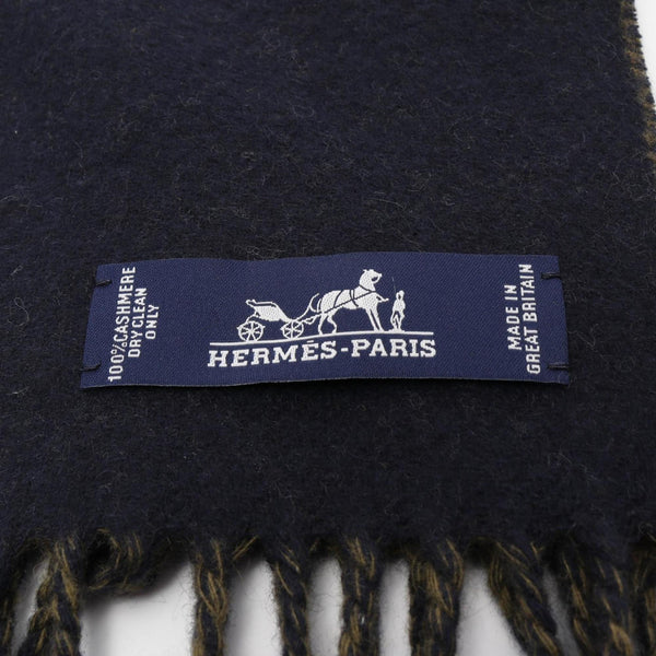 Hermes Kazak Zigzag Scarf Clothing Cashmere Women\'s Khaki Navy