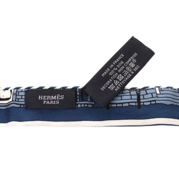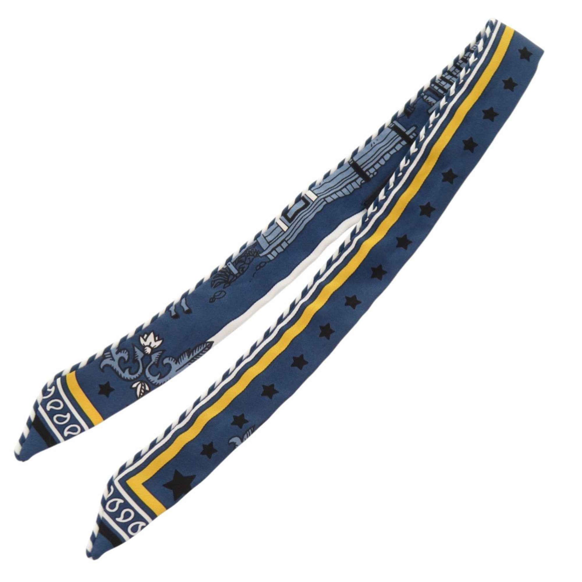 Like new Hermès Twilly Doll Candy Paris Station Silk Bleu Ardoise Noir Scarf Muffler Blue 0092 HERMES