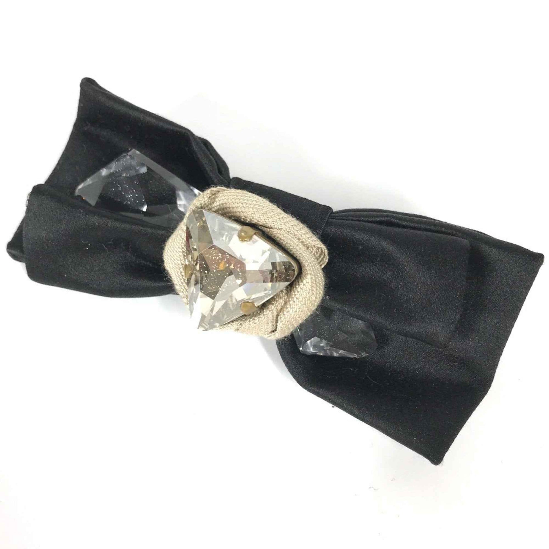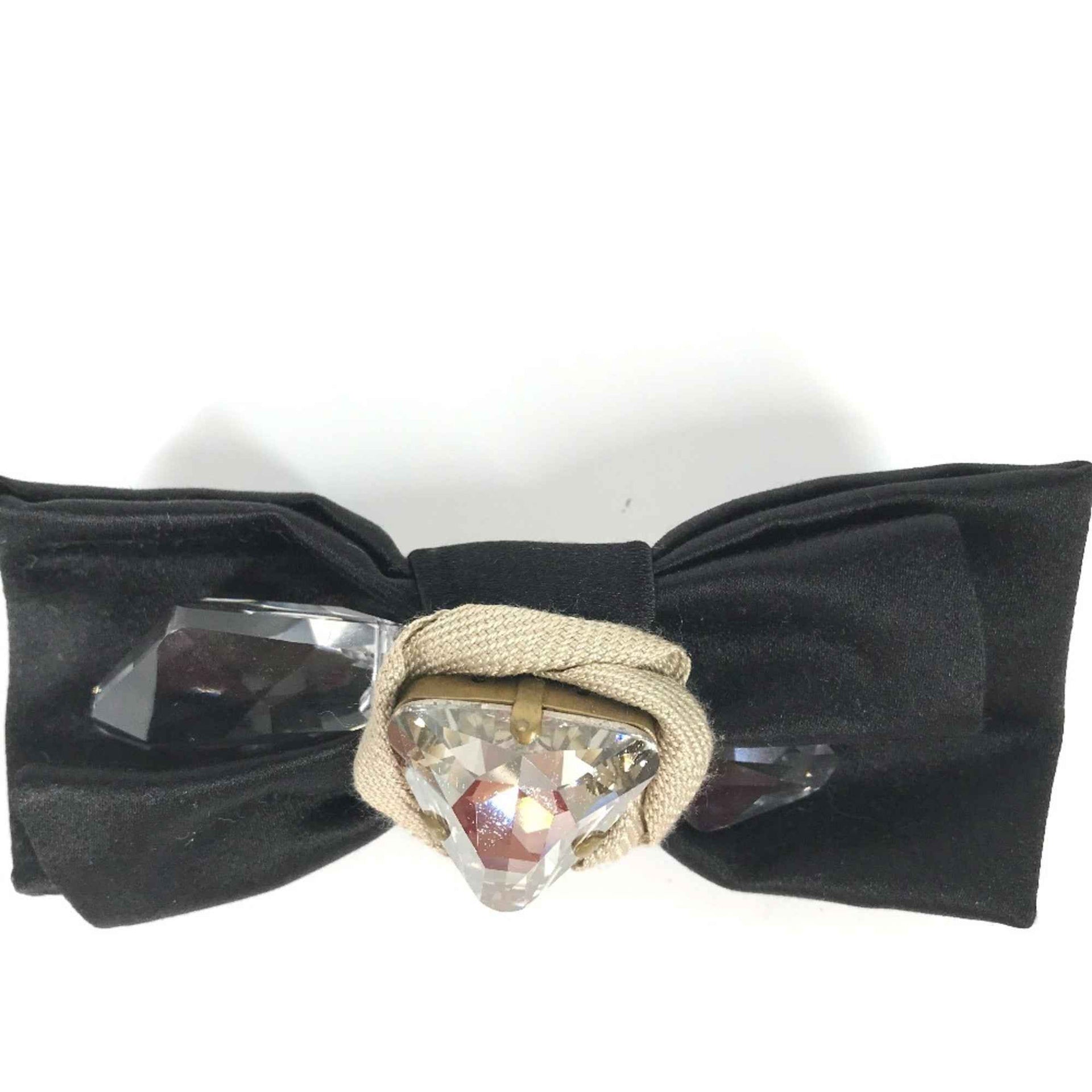 MIUMIU Miu 5AJD36 Ribbon Beaded Brooch Accessory Rayon Silk Women\'s Black