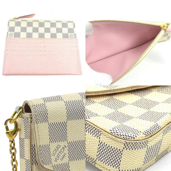 Louis Vuitton Damier Azur Pochette Felicie Canvas Chain Wallet in White, Women\'s, N40491, r10827a