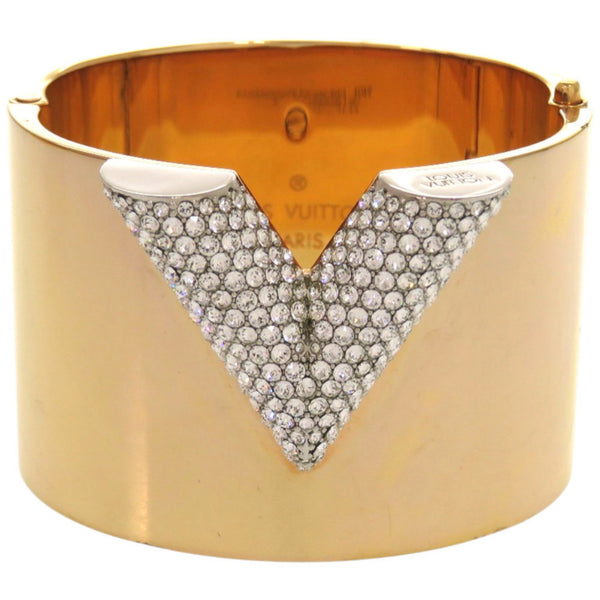 Louis Vuitton Essential V M68157 GP Rhinestone Gold Bangle LV 1002 LOUIS VUITTON