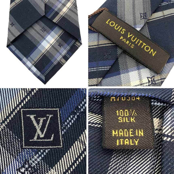 LOUIS VUITTON Louis Vuitton Tie Tartan Check M70584 Navy 100% Silk Men\'s