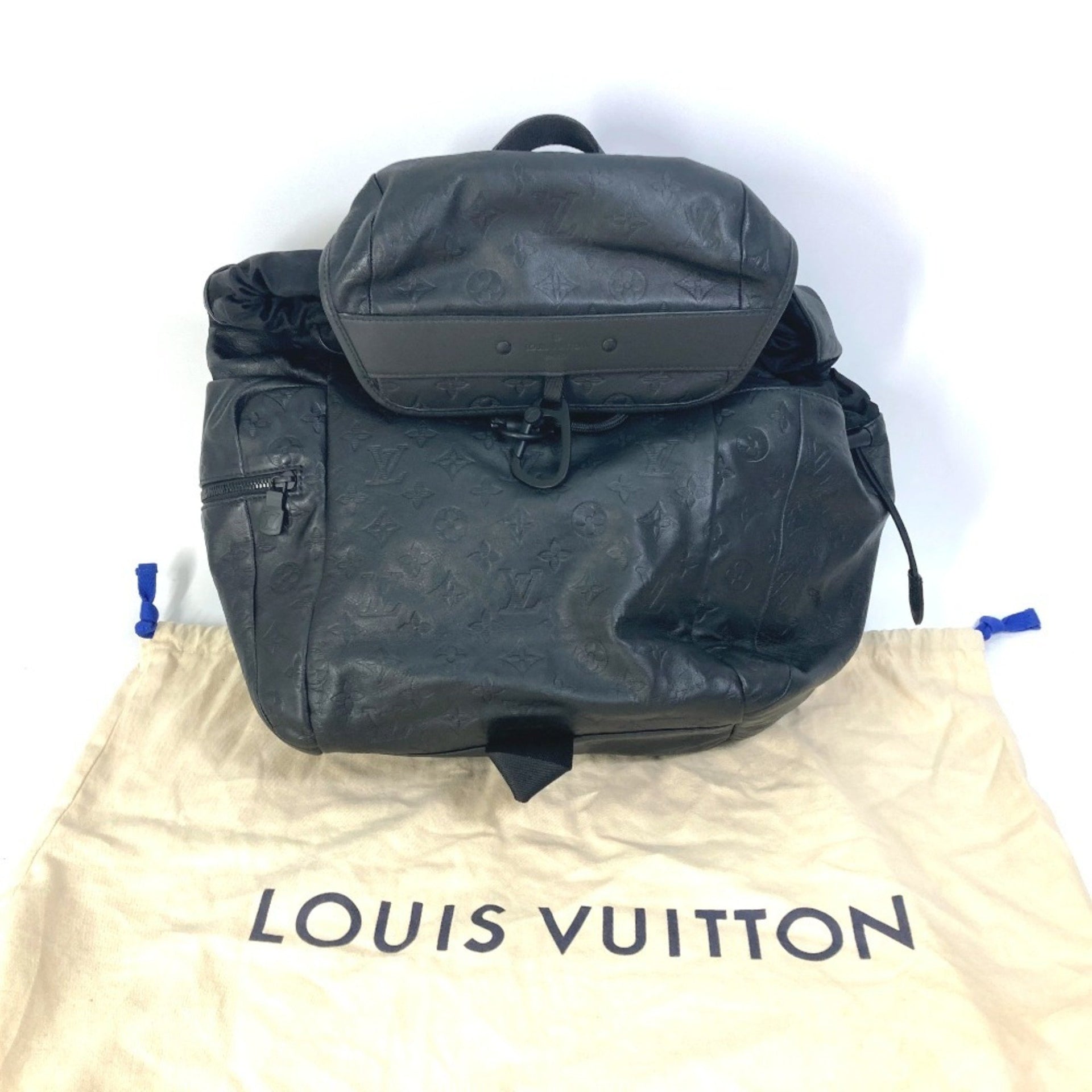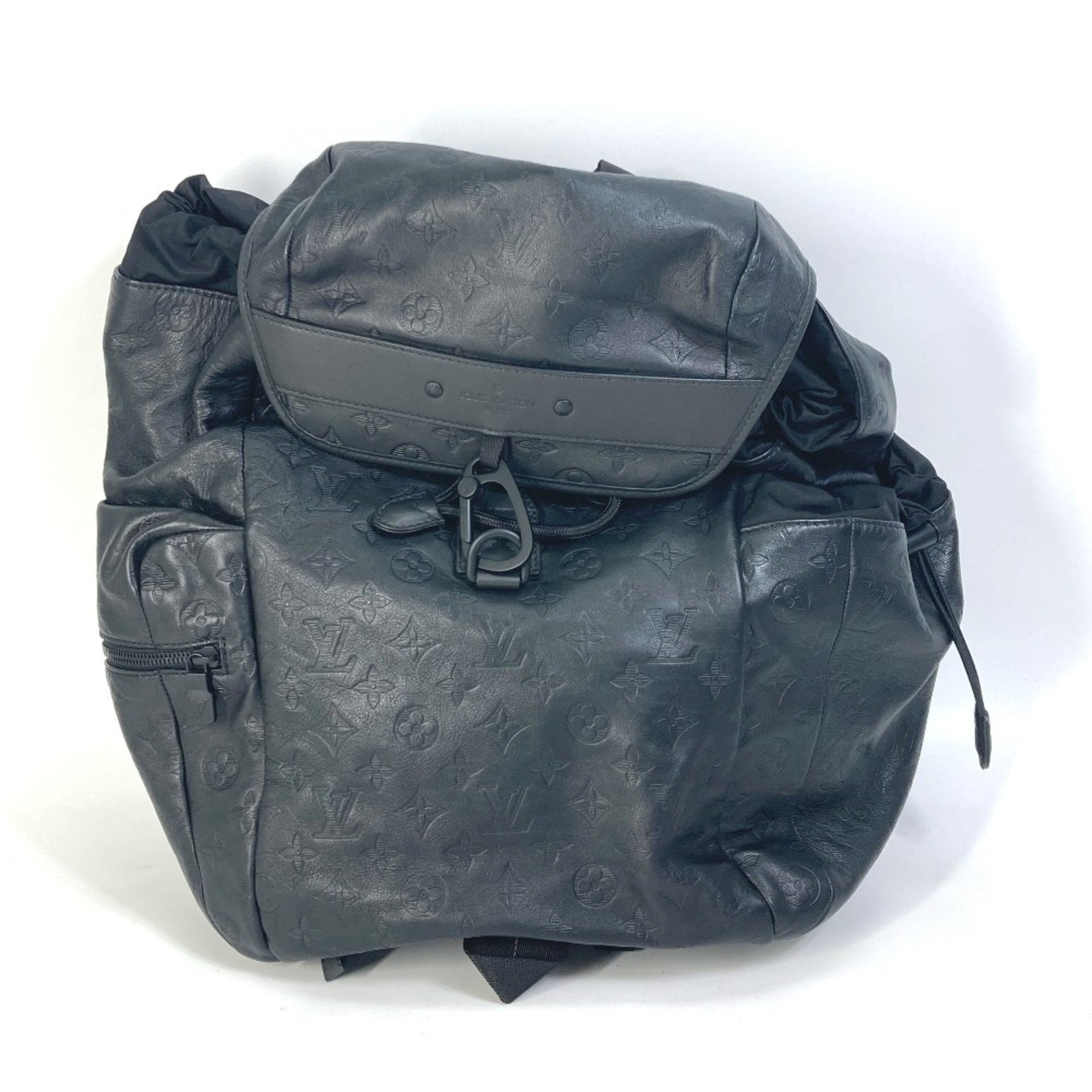 LOUIS VUITTON M43680 Monogram Shadow Discovery Backpack, Leather, Men\'s, Black
