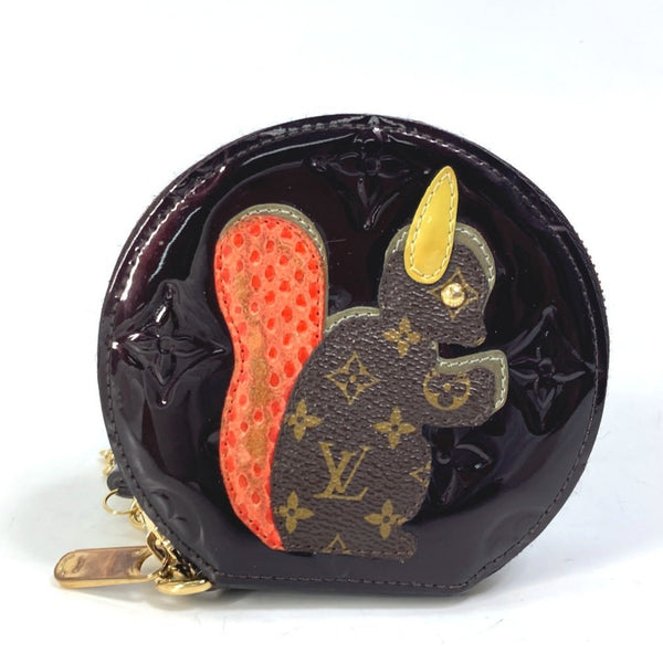 LOUIS VUITTON M91386 Monogram Vernis Porte Monnaie Ecreuil Coin Purse Wallet with Chain and Tassel, Women\'s, Amaranth Purple