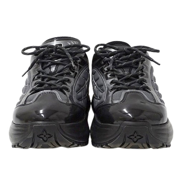Louis Vuitton Men\'s Discovery Line Sneakers, Patent Leather Mesh Noir, Size 6 1/2 (Approx. 25.5cm), Black, Platform Sole, Box Included.