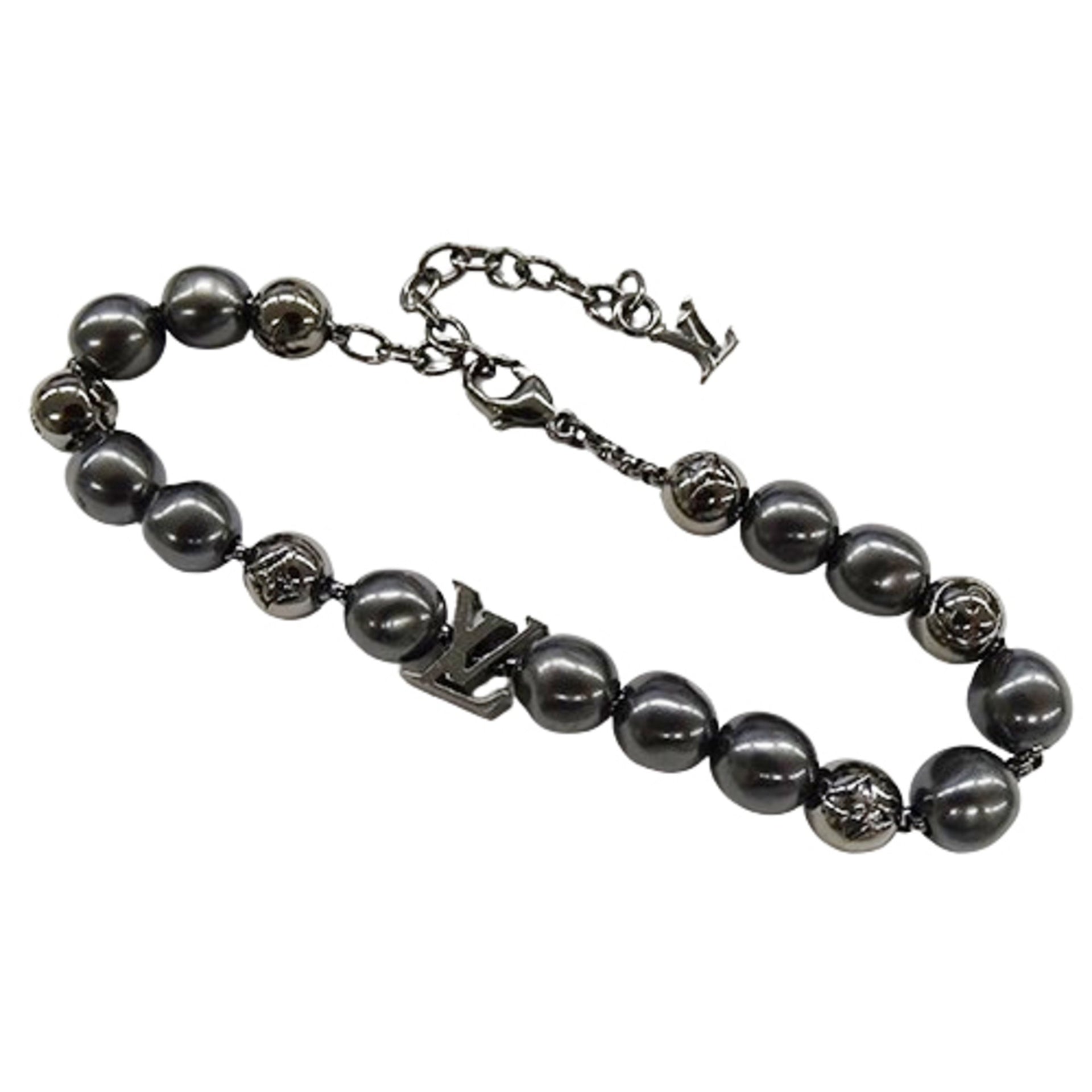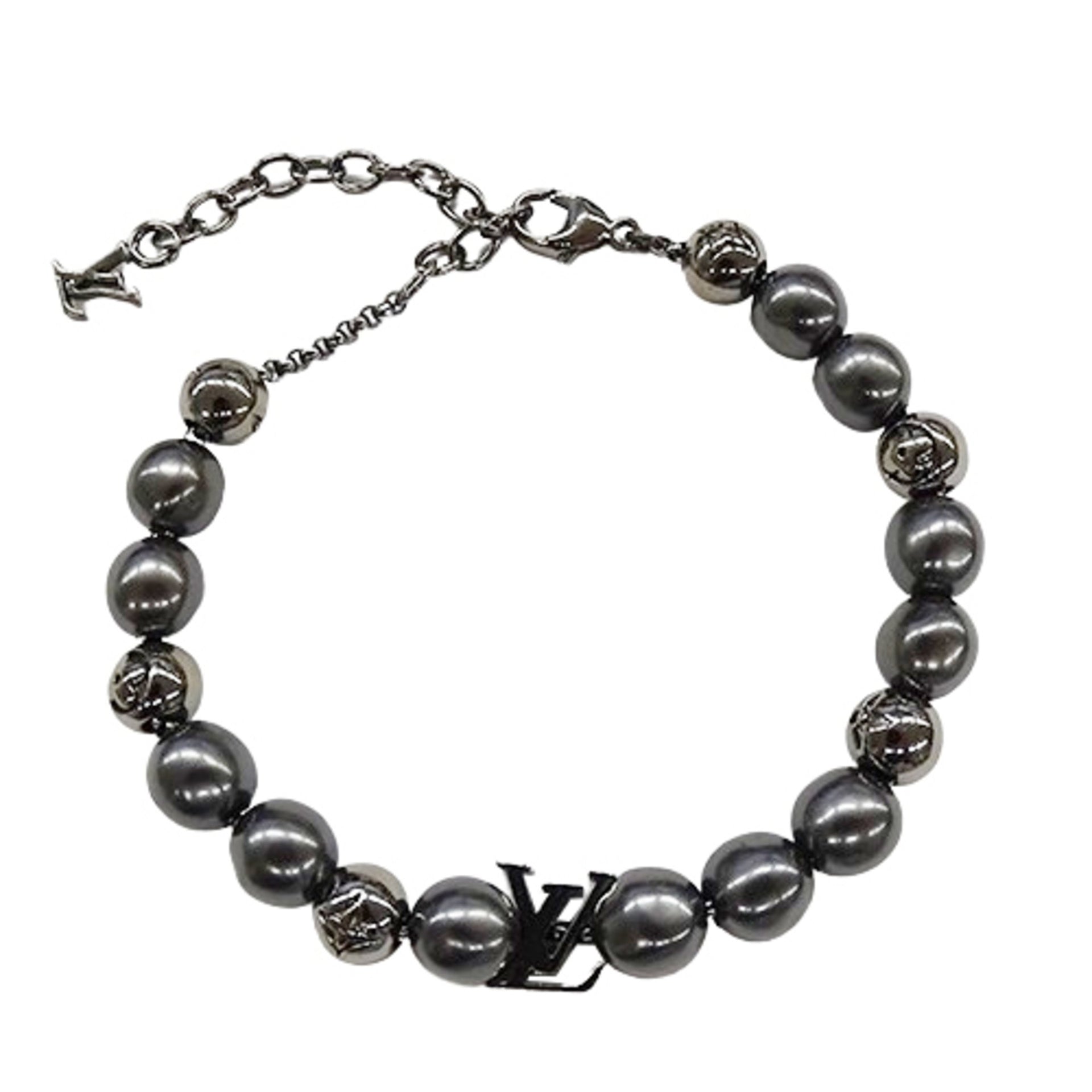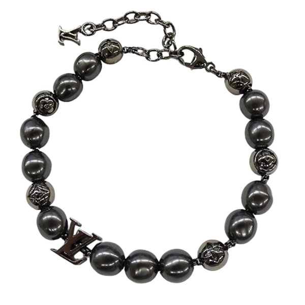 Louis Vuitton Men\'s Monogram Pearl Bracelet in Black (M0995A AK0223)