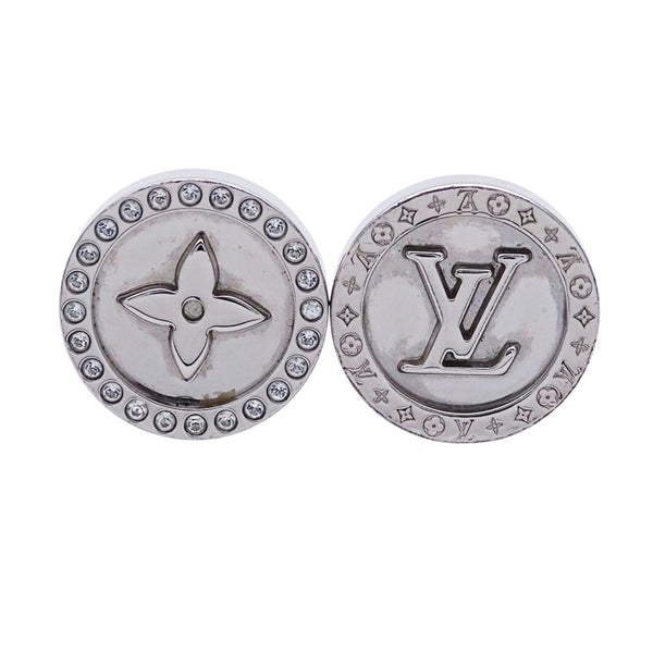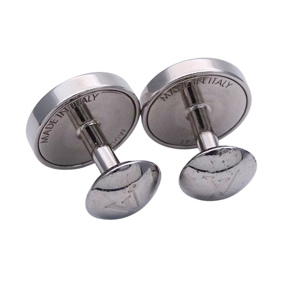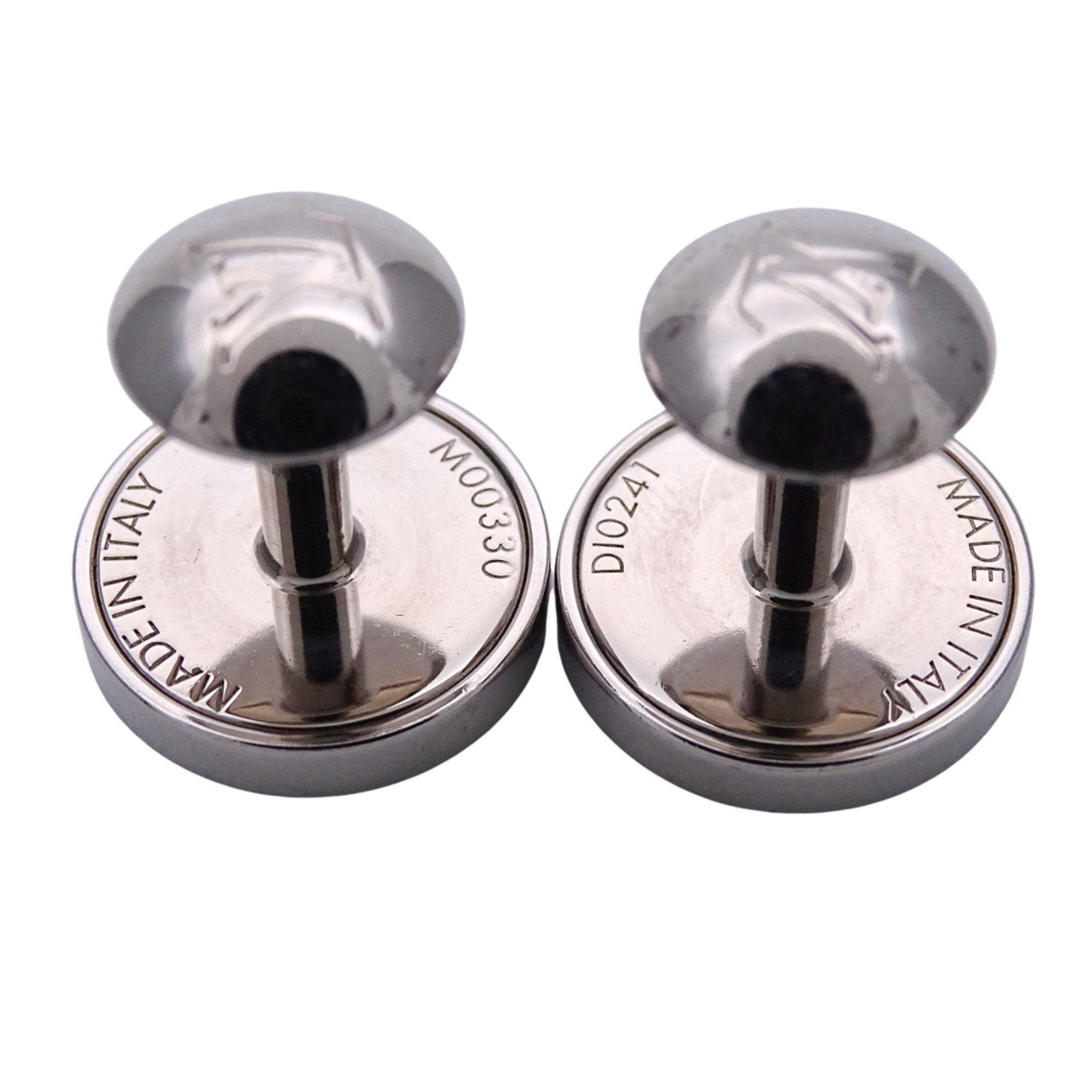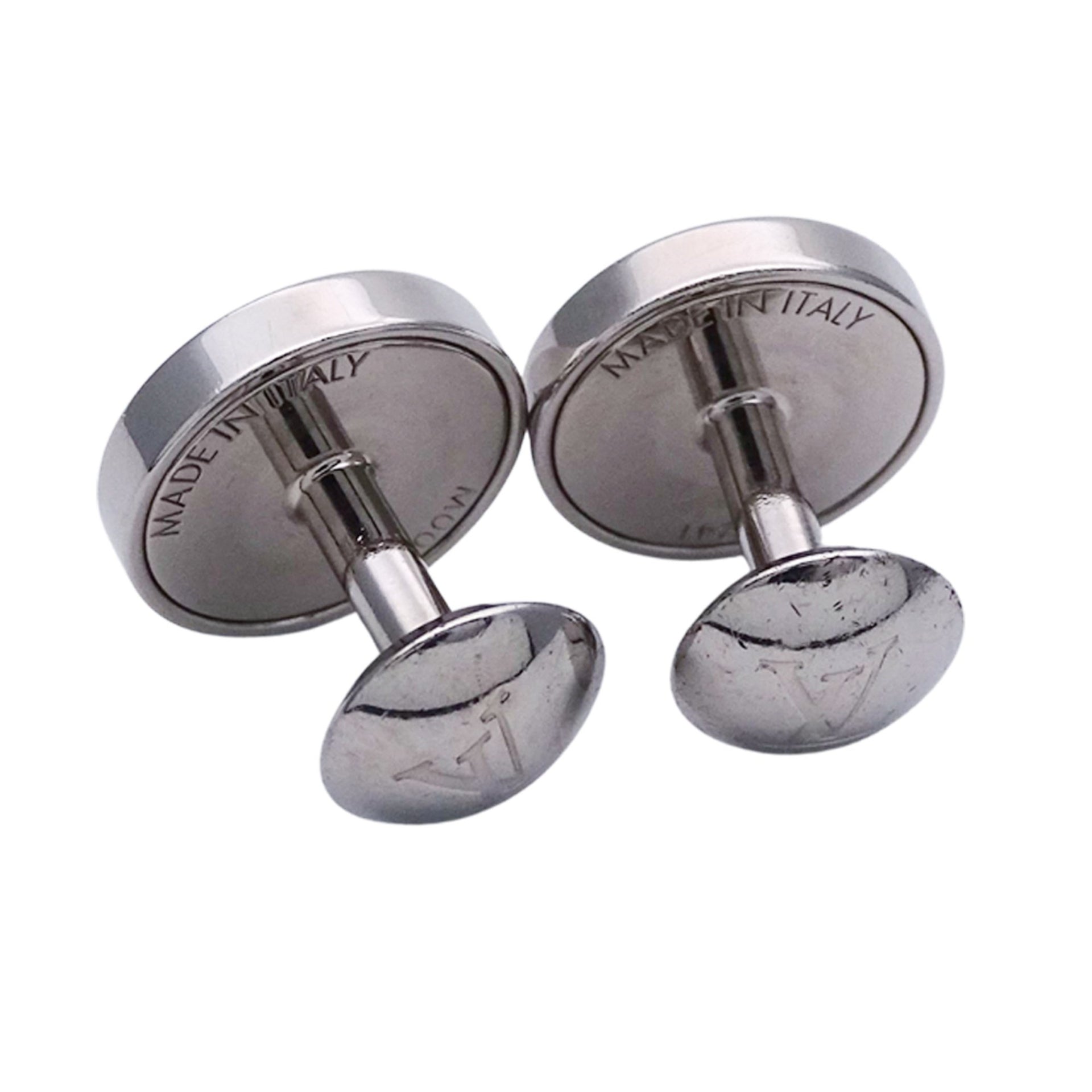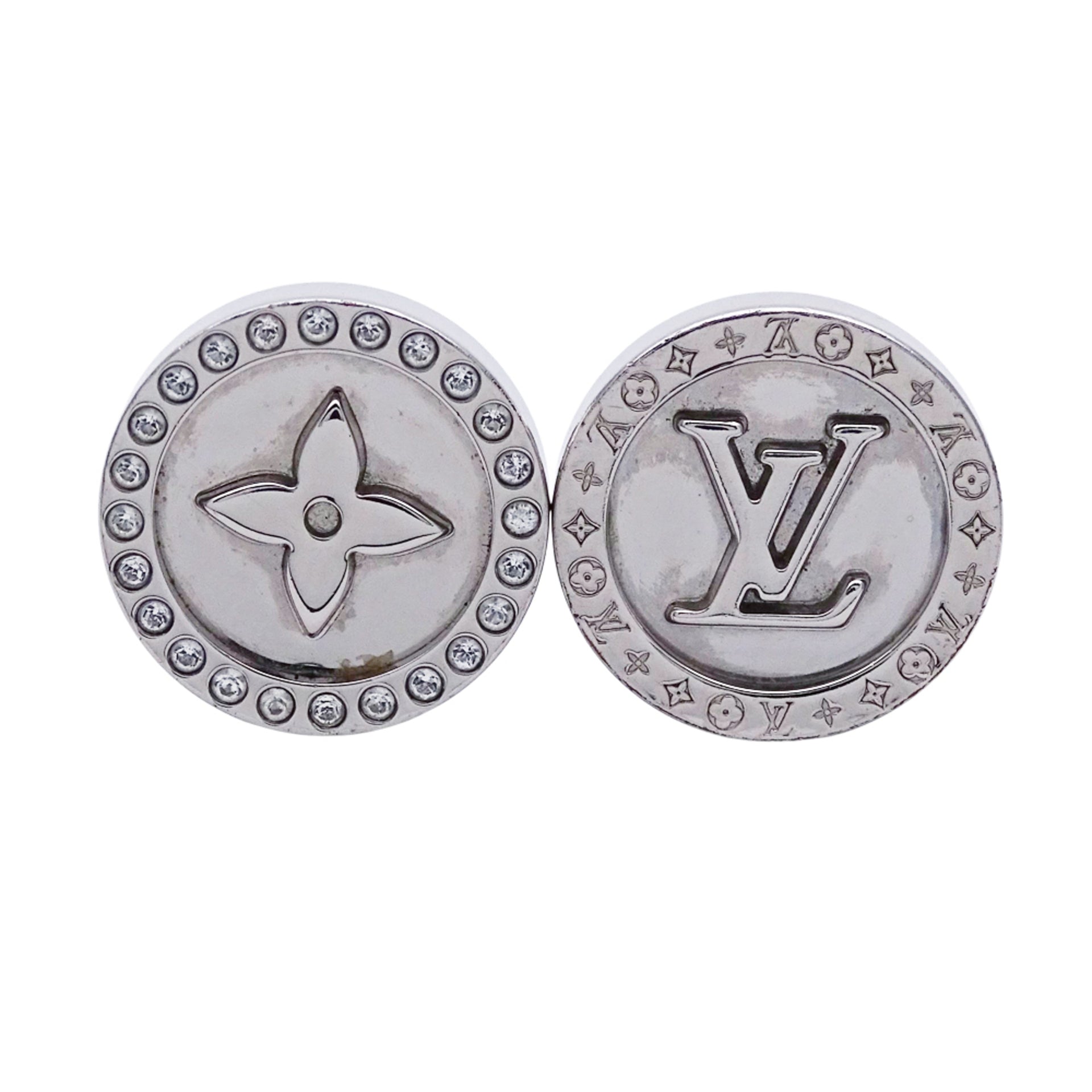 Louis Vuitton Monogram Cufflinks, Men\'s Metal Bouton de Manchette LV Gloves, Silver, M00330, Logo, Initials, Rhinestones, Suit, Formal