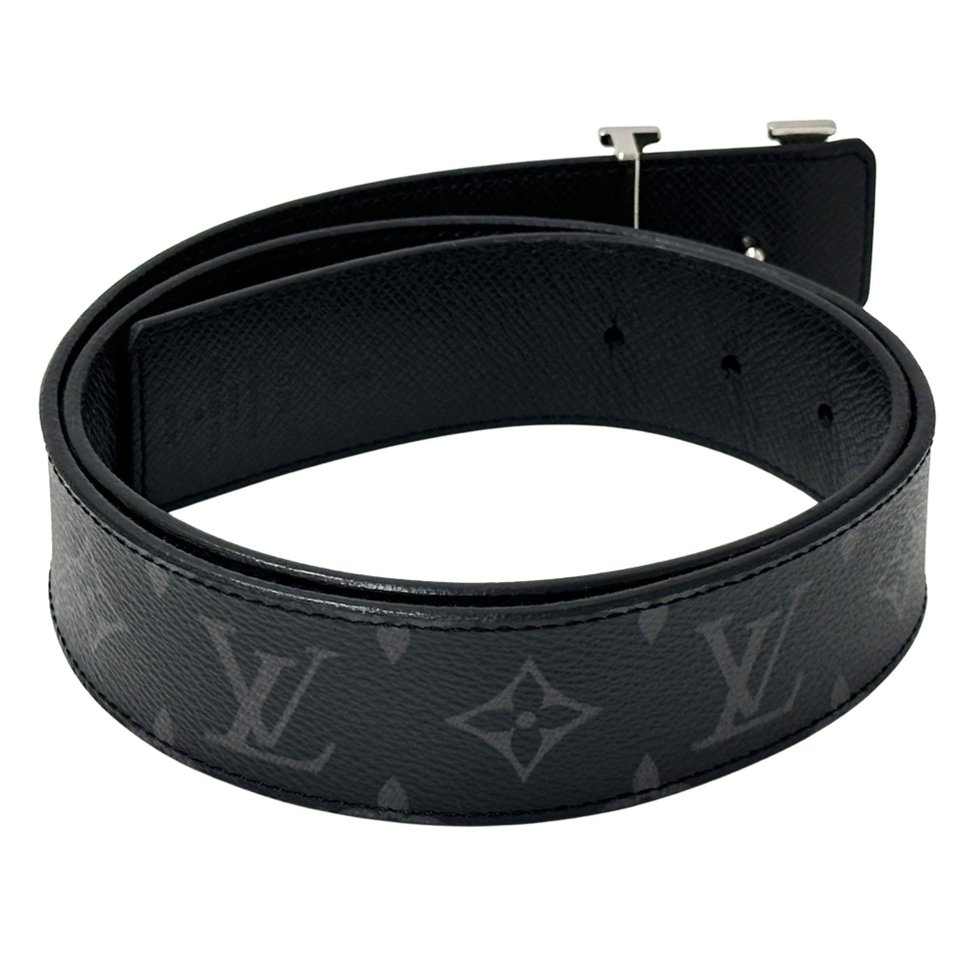 Louis Vuitton Monogram Eclipse Men\'s Belt with LV Initials, 40mm, Black/Gray, M0157, Reversible