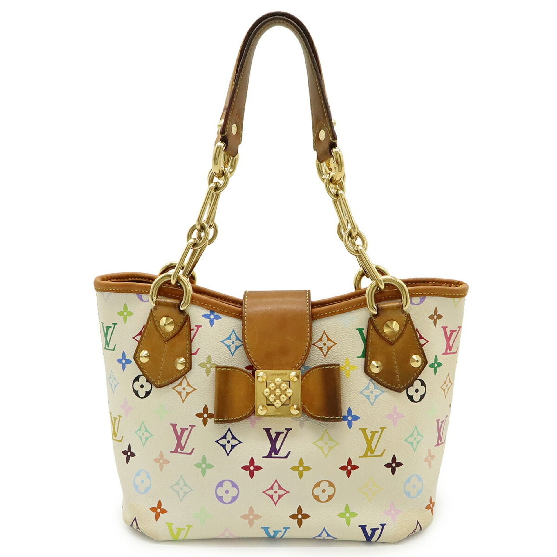 LOUIS VUITTON Monogram Multicolore Annie MM Tote Bag Shoulder Chain Ribbon Blanc White M40307