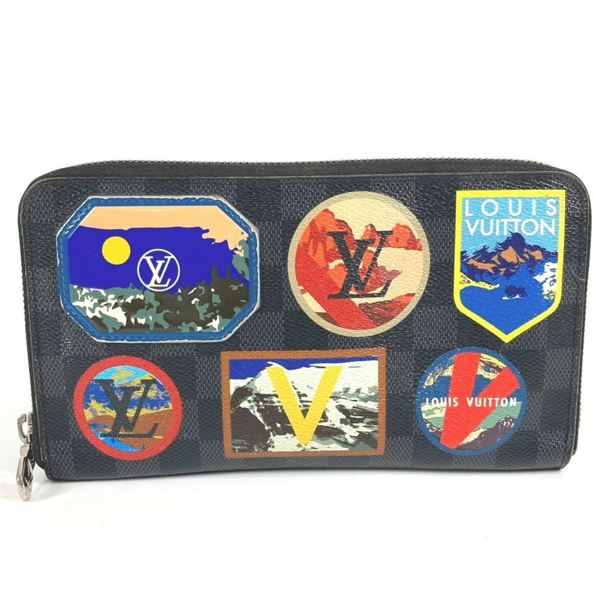 LOUIS VUITTON N60153 Damier Graphite Zippy Organizer NM Long Wallet with LV Alps Patch, Round Zipper, Canvas, Men\'s and Women\'s, Black