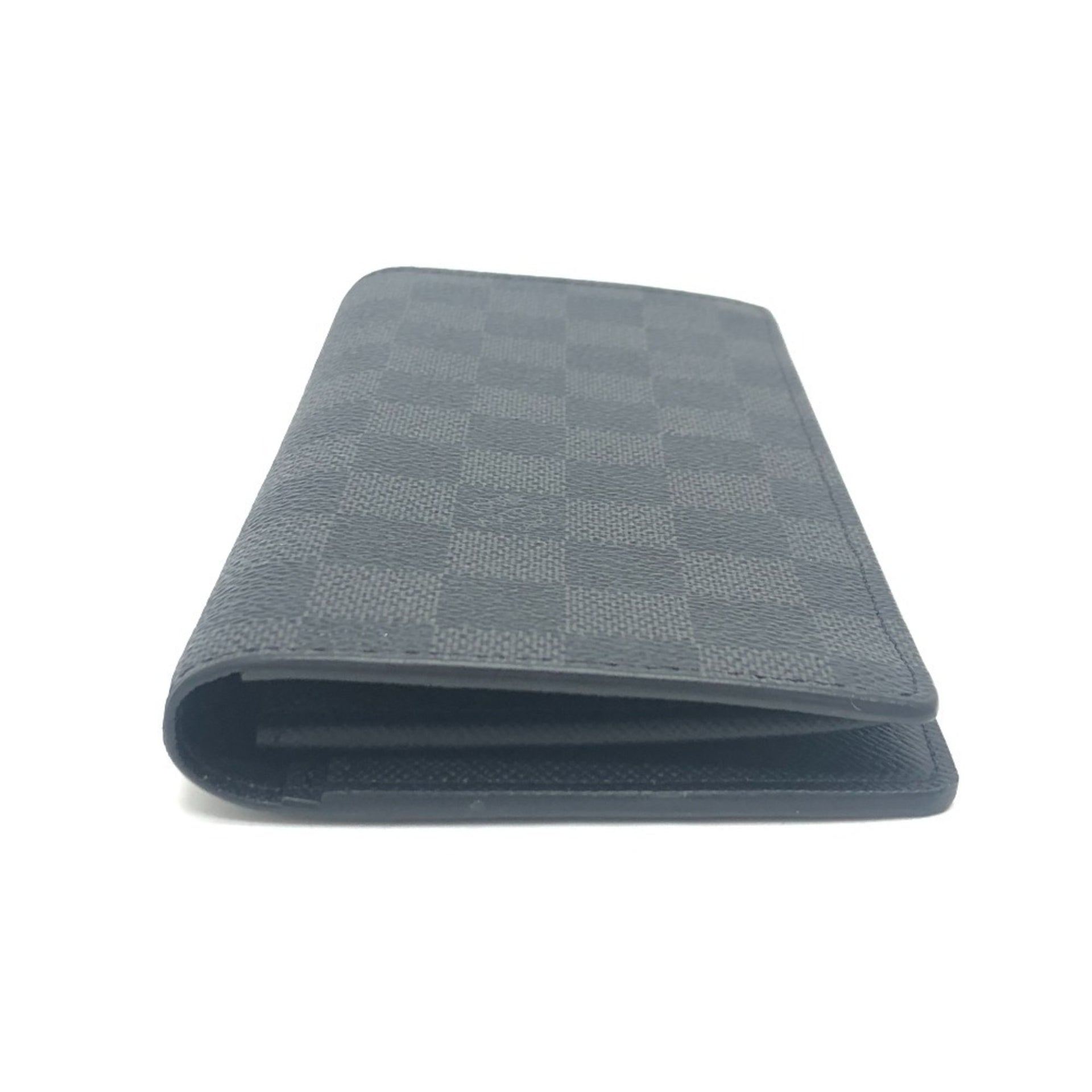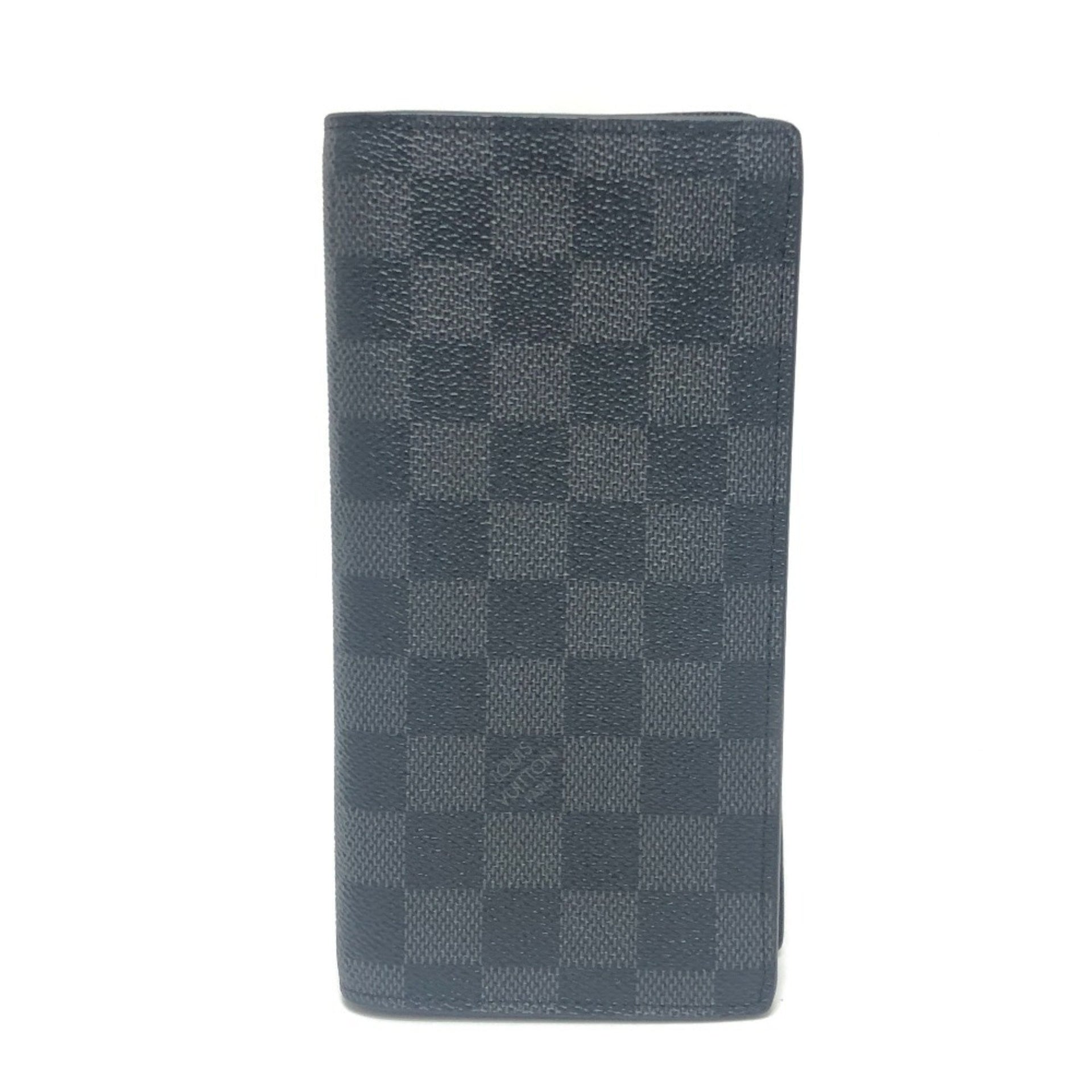 LOUIS VUITTON N62655 Portefeuille Brazza Wallet, Bifold Long Damier Graphite Canvas, Men\'s, Black, Like New