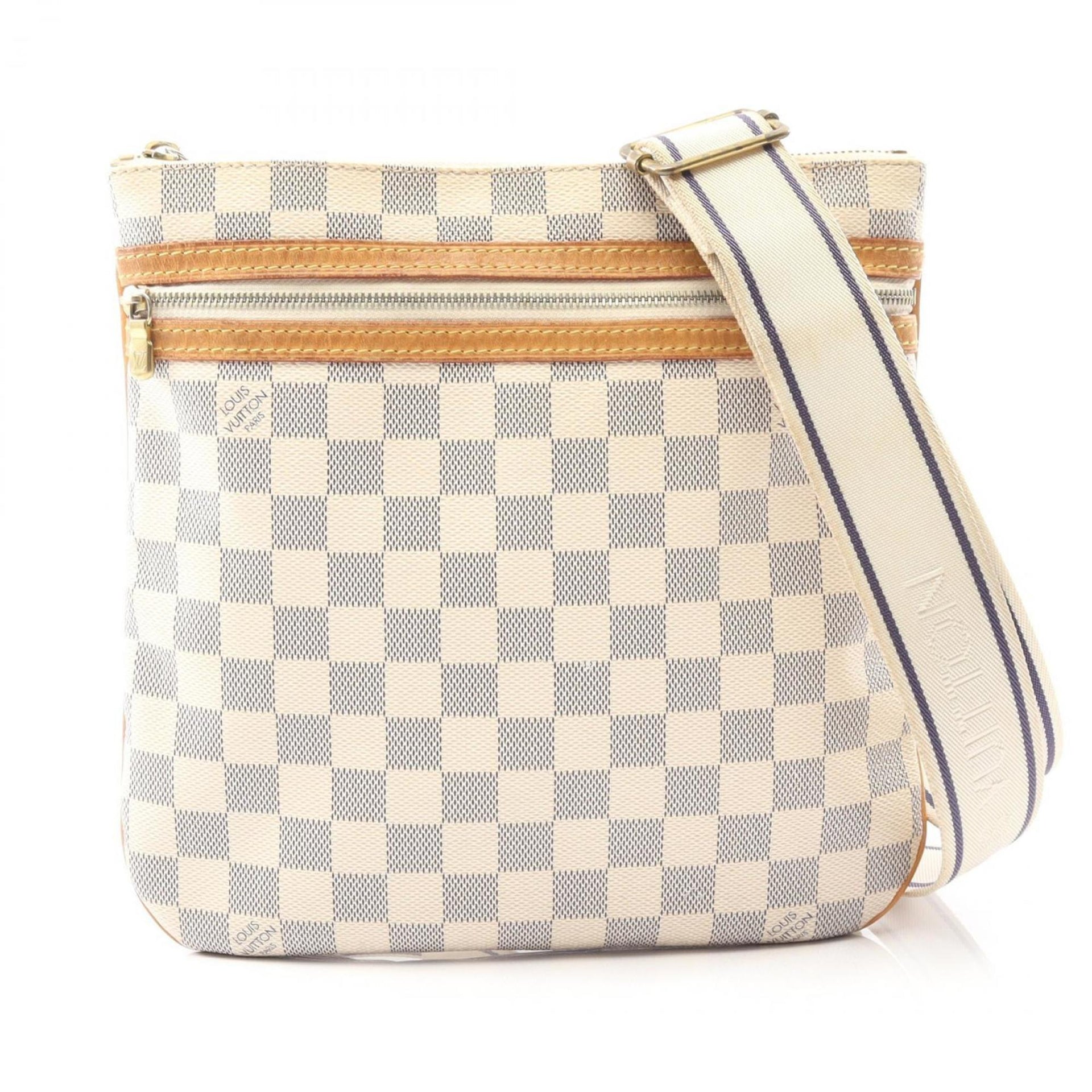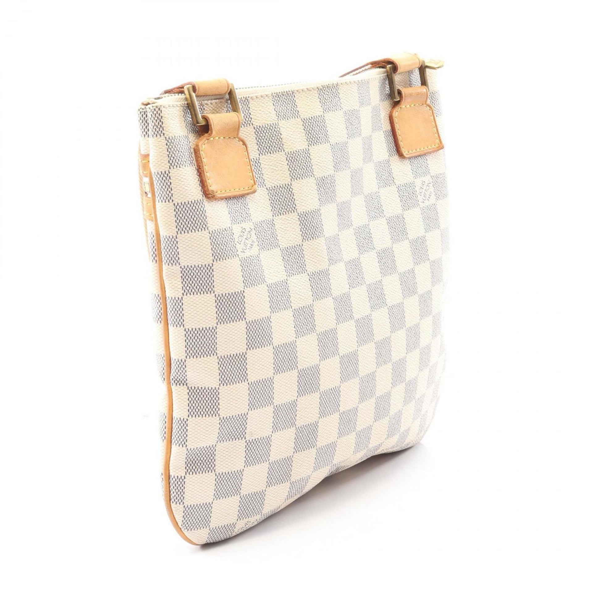 Louis Vuitton Pochette Bosphore Shoulder Bag, Coated Canvas and Leather with Damier Azur, Women\'s, White, N51112