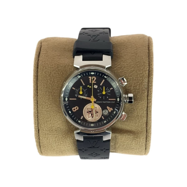 LOUIS VUITTON Tambour Lovely Cup Black/Silver Stainless Steel/Rubber/Glass Watch Q132G Quartz Movement Black Dial Women\'s