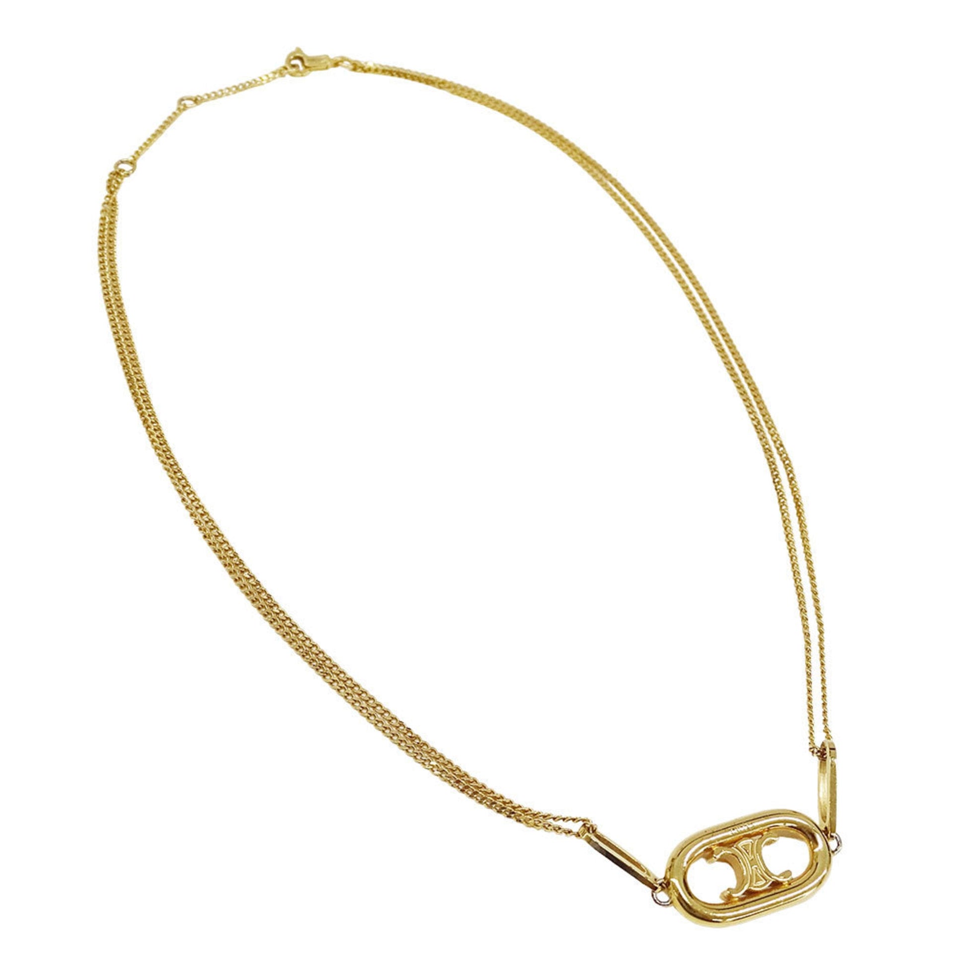 Celine Triomphe Gold Double-Strand Necklace for Women, Accessory with Logo
