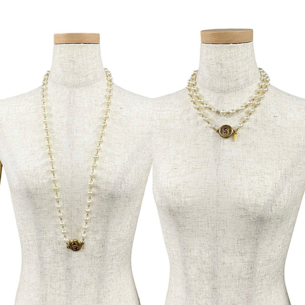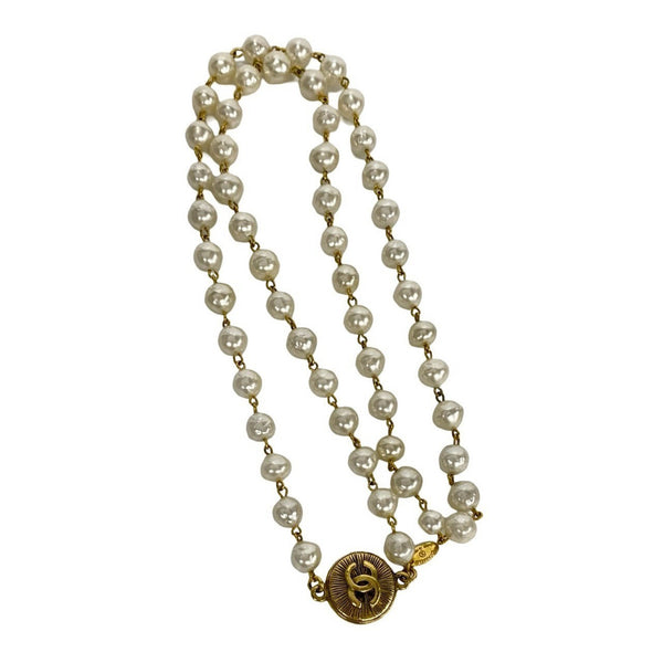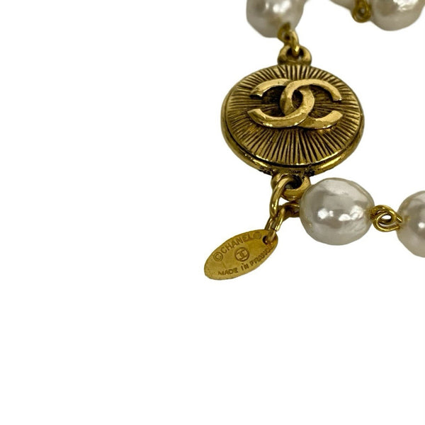 CHANEL Coco Mark Faux Pearl GP Necklace Choker Pendant White Gold 49989