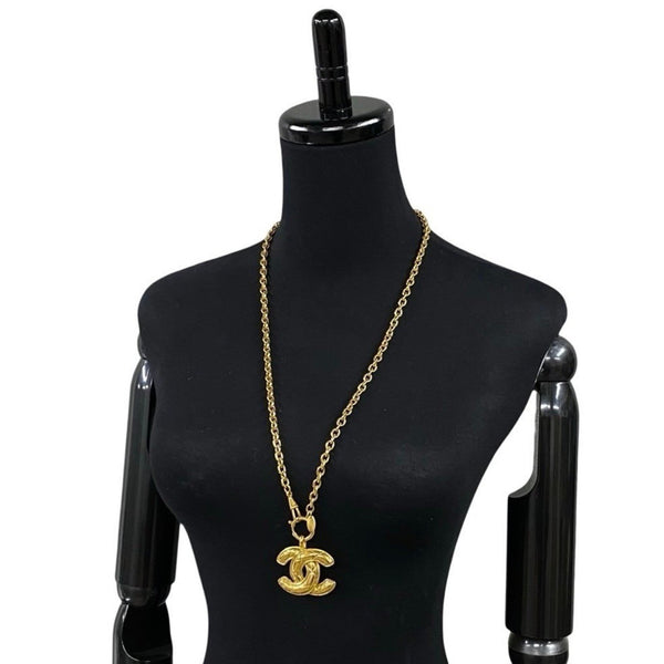 CHANEL Coco Mark Motif Chain Necklace Pendant Choker Gold 31357