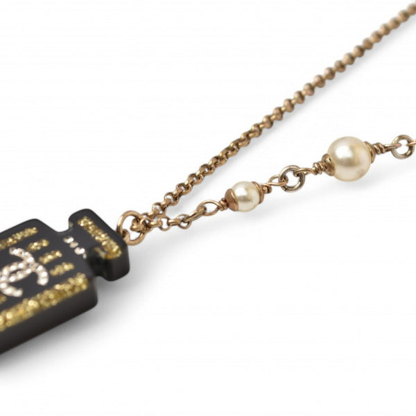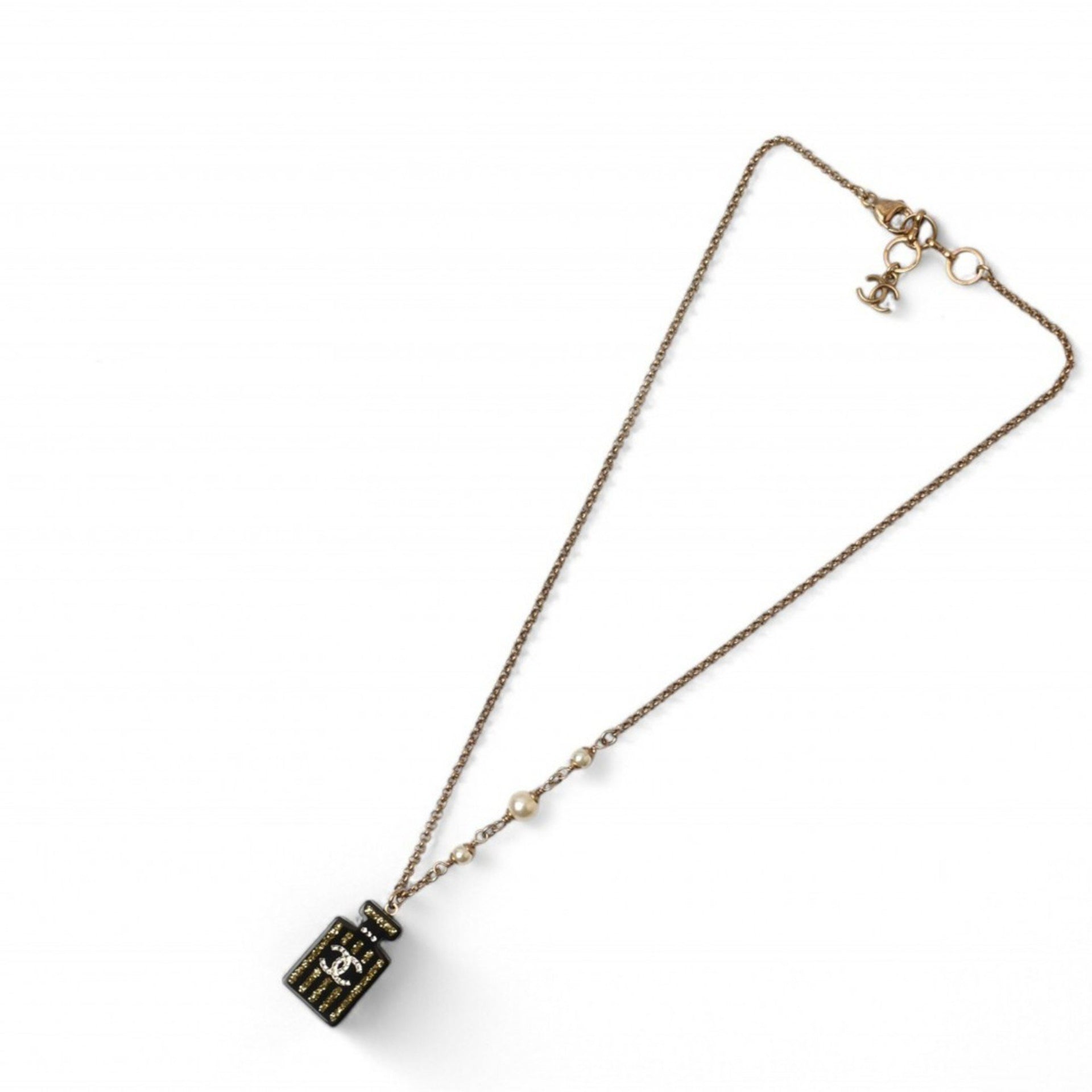 Chanel Necklace Pendant CHANEL Coco Mark Bottle Motif Rhinestone Gold Black