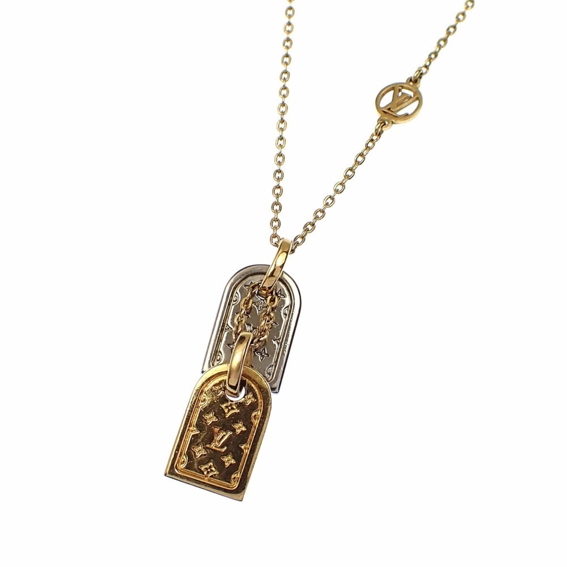 Louis Vuitton Nanogram Necklace, Women\'s, GP Metal, M63141, Name Tag Motif, A221467