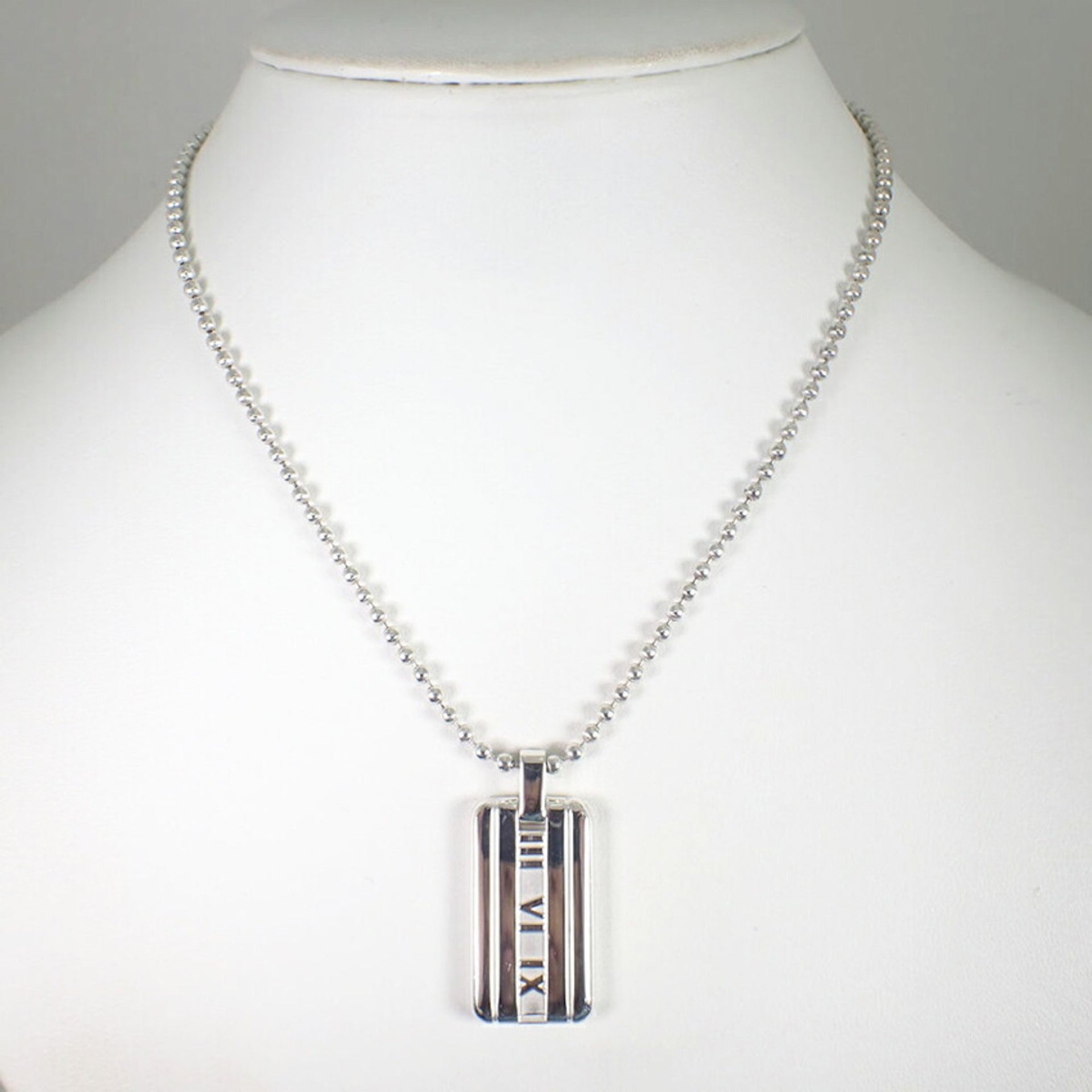 TIFFANY 925 Atlas Bar Pendant Necklace j87-3
