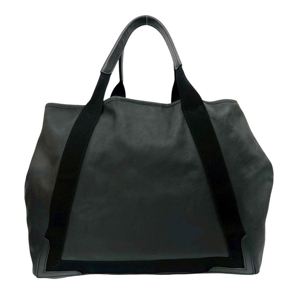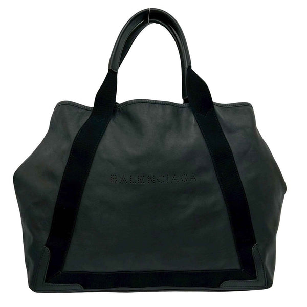 BALENCIAGA Navy Cabas Logo Leather Tote Bag, Black, 69362