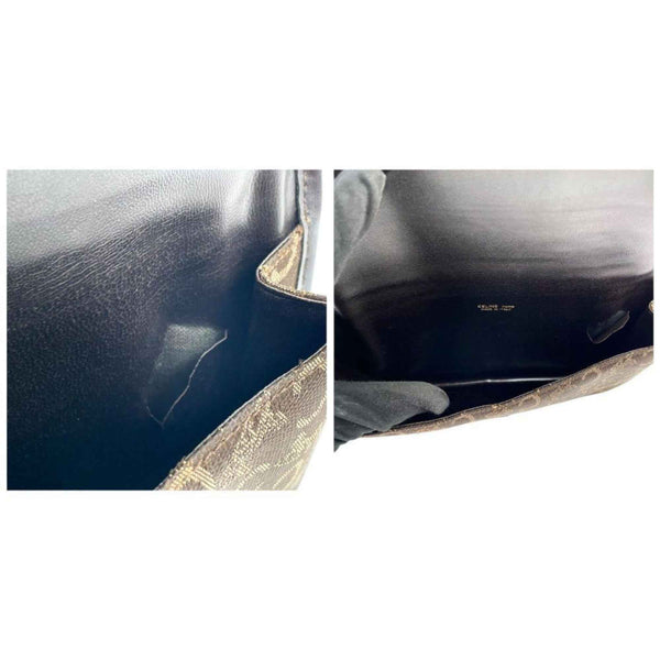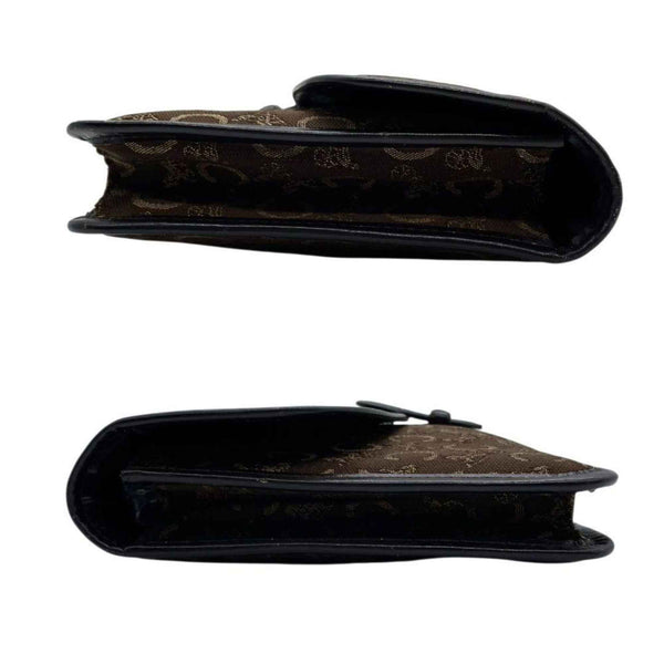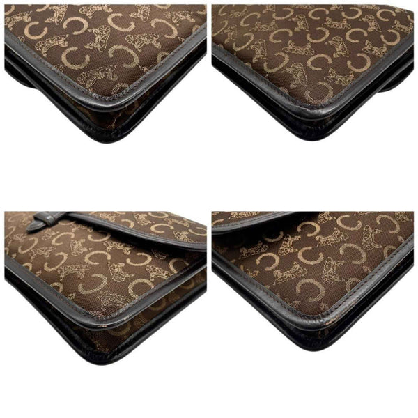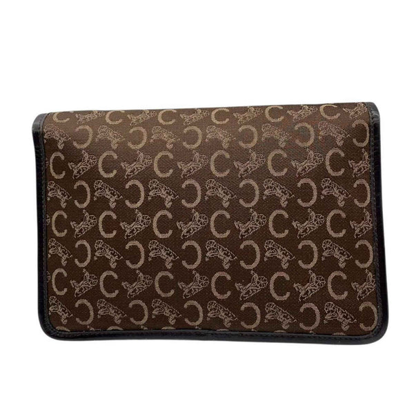 CELINE Clutch Bag, Brown, C Macadam Pattern, Flap, Carriage Hardware, Second Canvas and Leather, U15