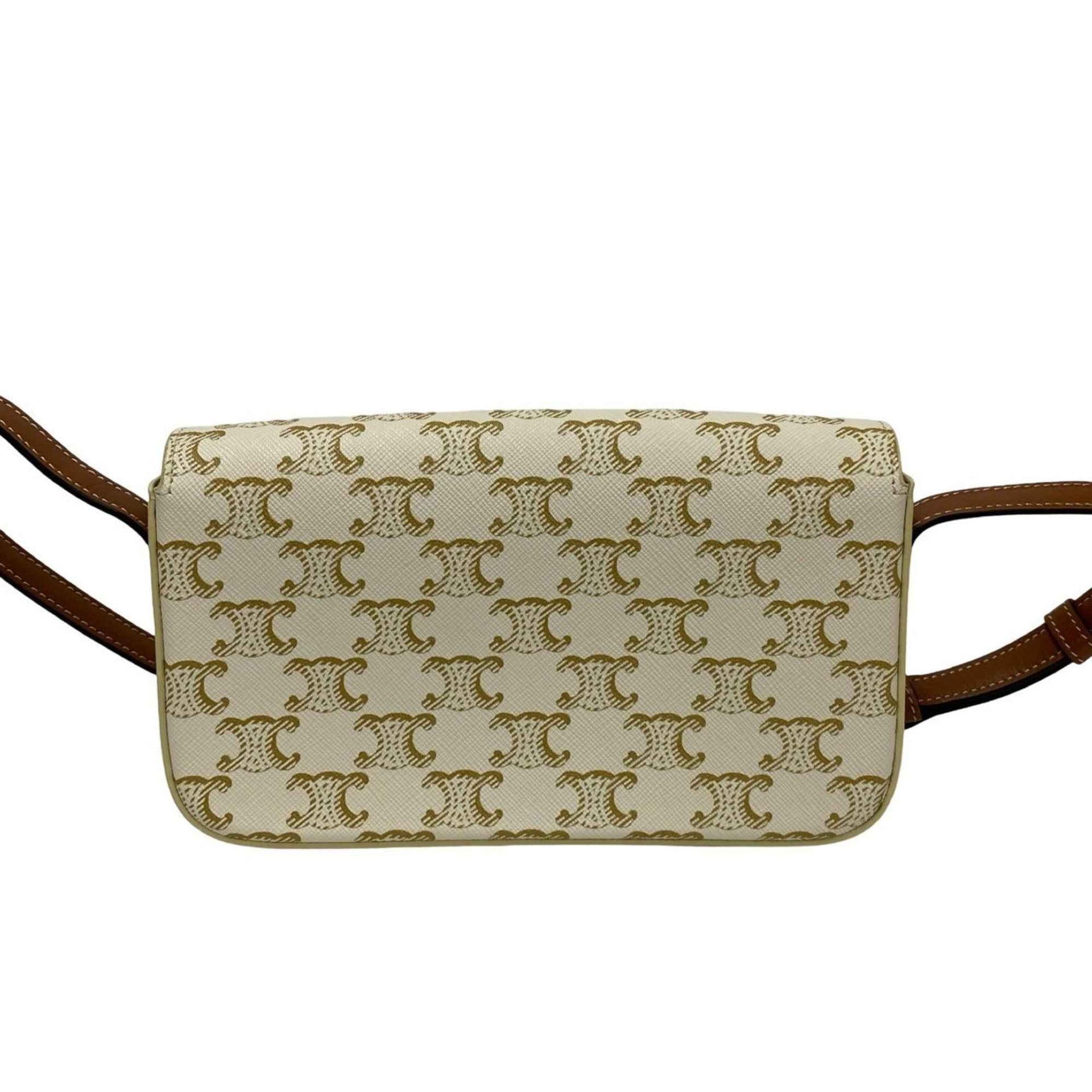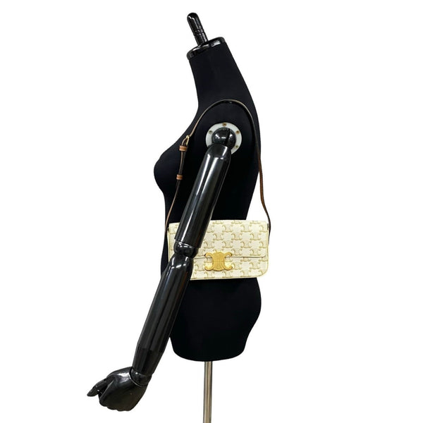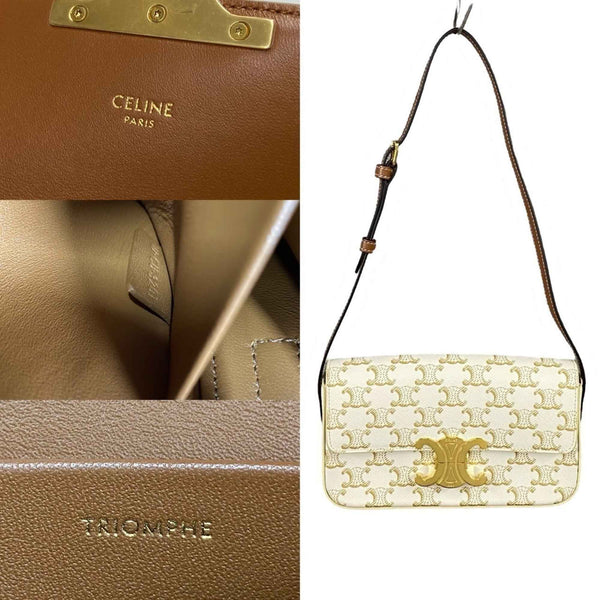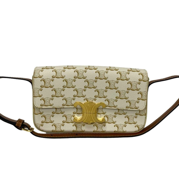 CELINE Macadam Blason with Triomphe hardware and leather mini semi-strap shoulder bag in brown ivory (91210)