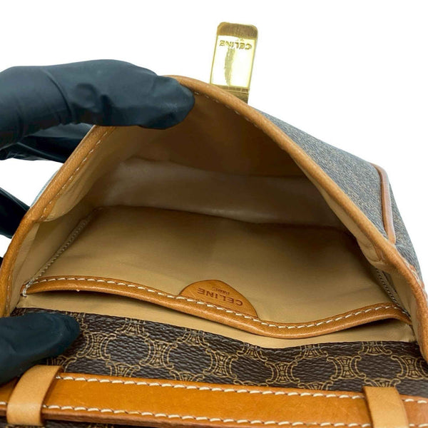 CELINE Vintage Macadam Blason Leather Mini Shoulder Bag/Pochette/Sacoche in Brown (37756)