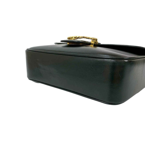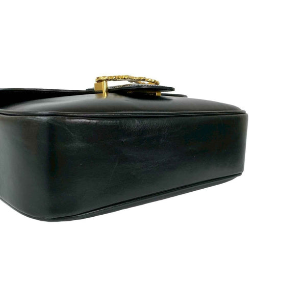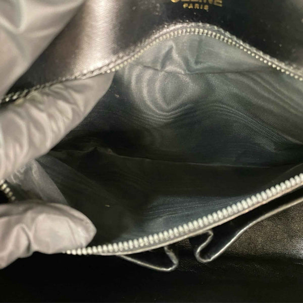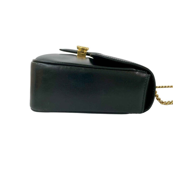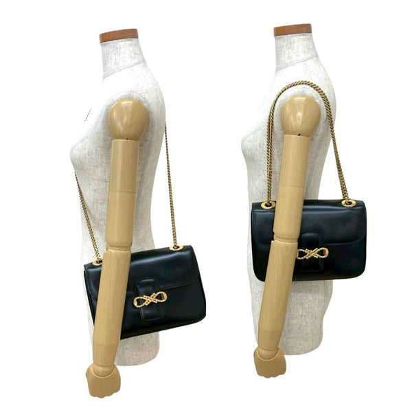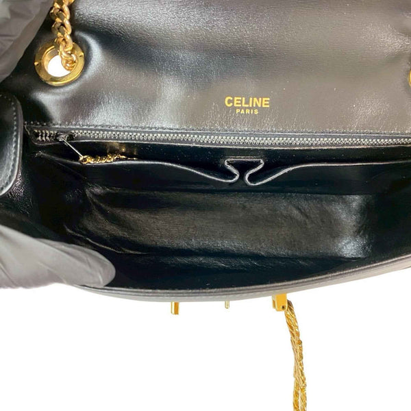 CELINE Vintage Ribbon Motif Metal Hardware Calf Leather Chain Semi Shoulder Bag Pochette 54088